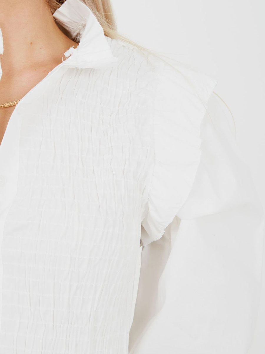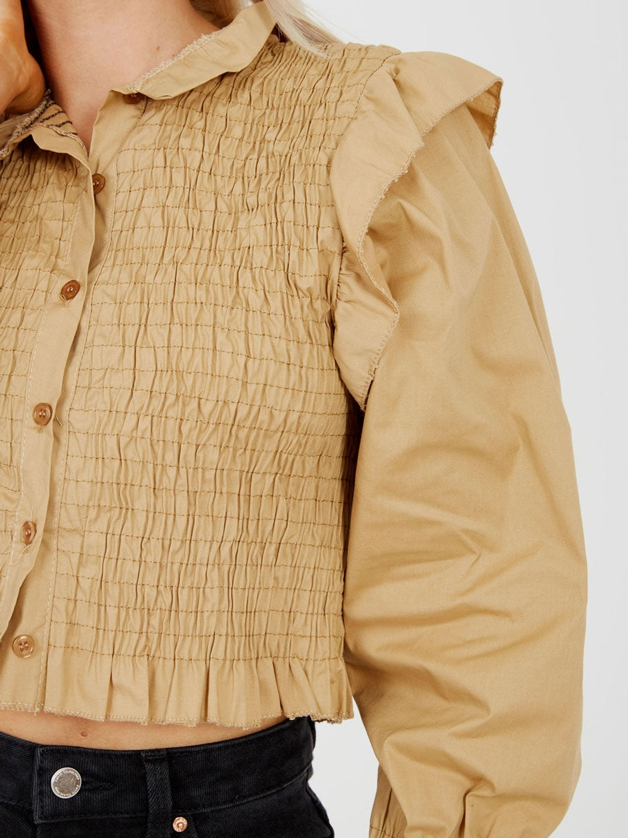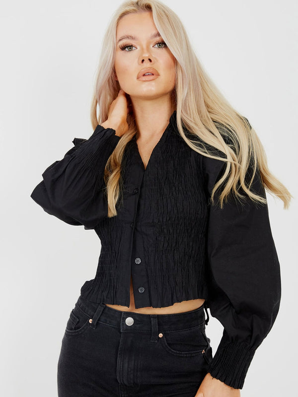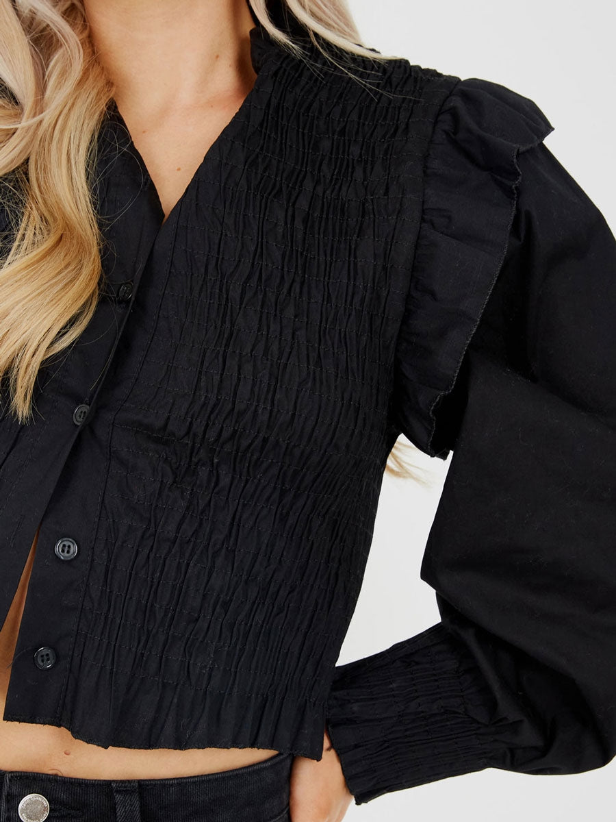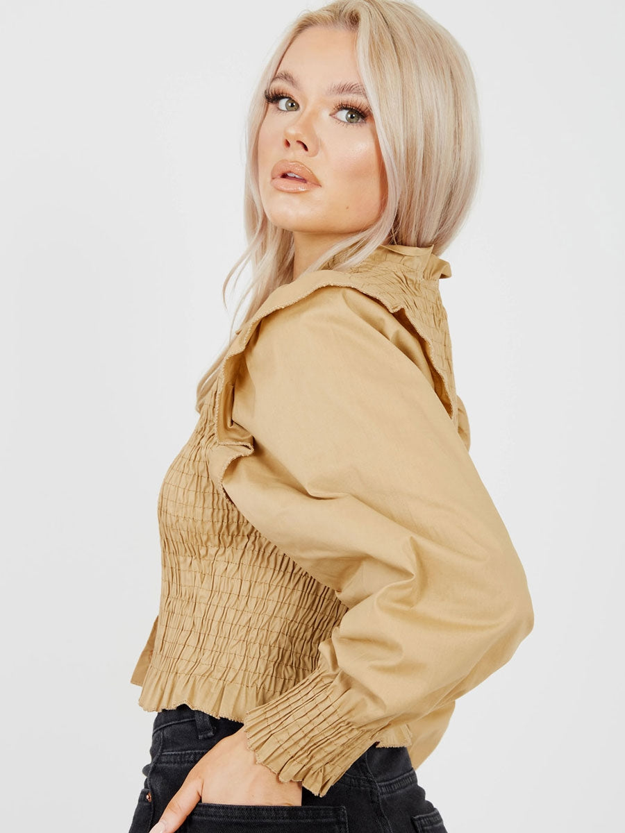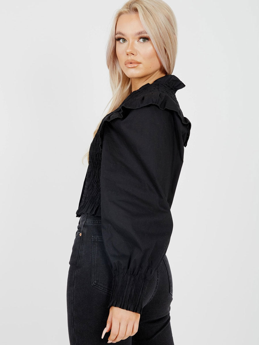 Shirred Frill Detail Cropped Shirt Blouse