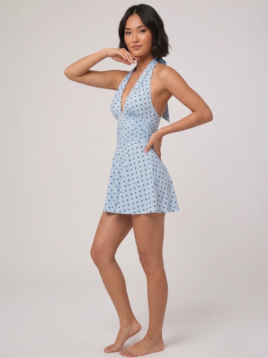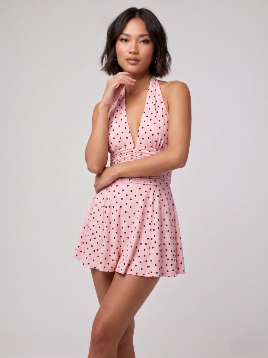 Polka Dot Slinky Halter Neck Mini Dress