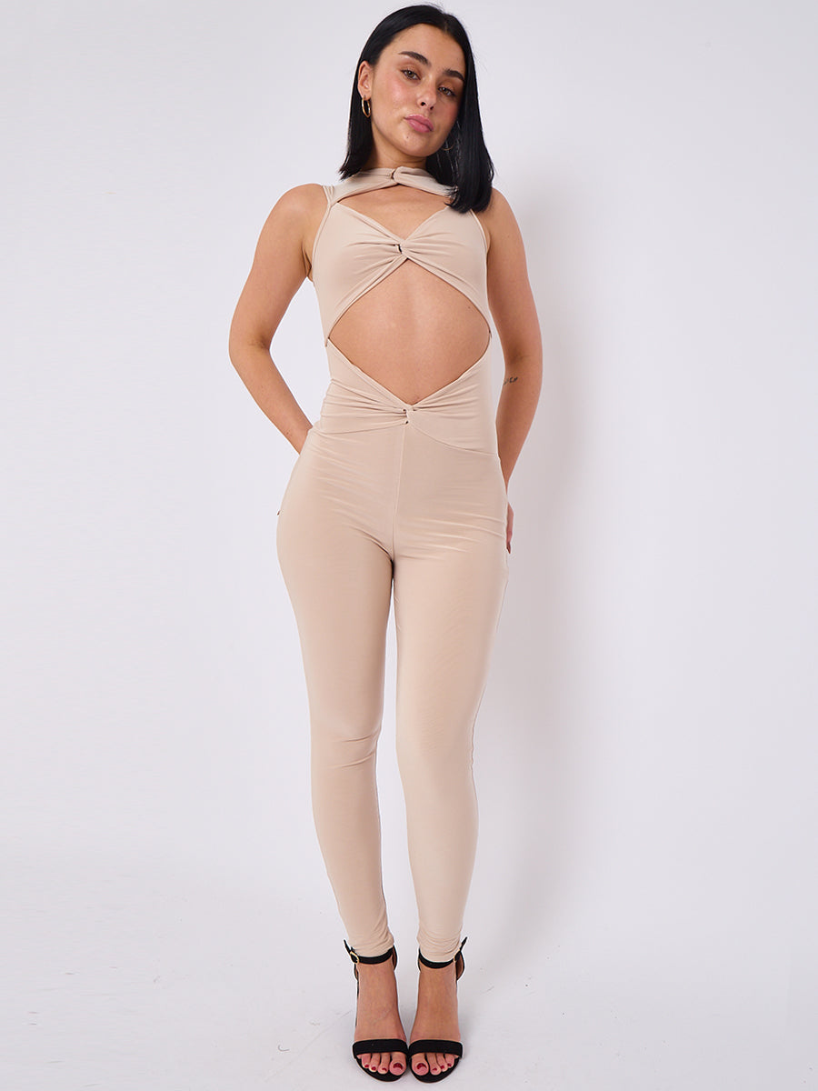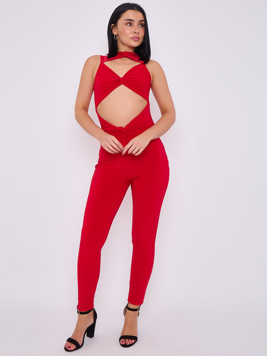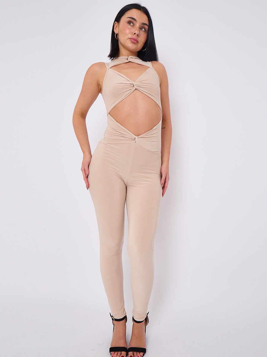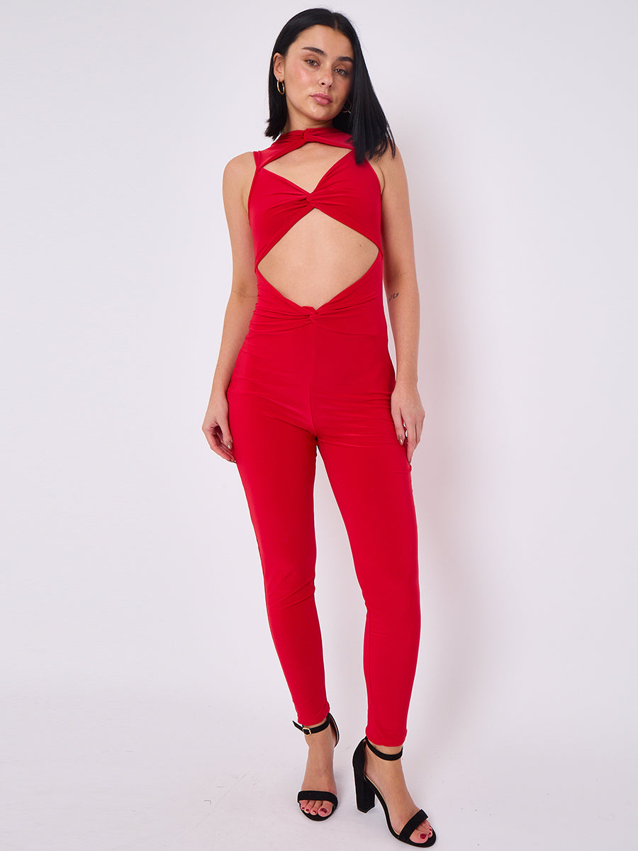 Tie Knot Detail Cut Out Slinky Jumpsuit