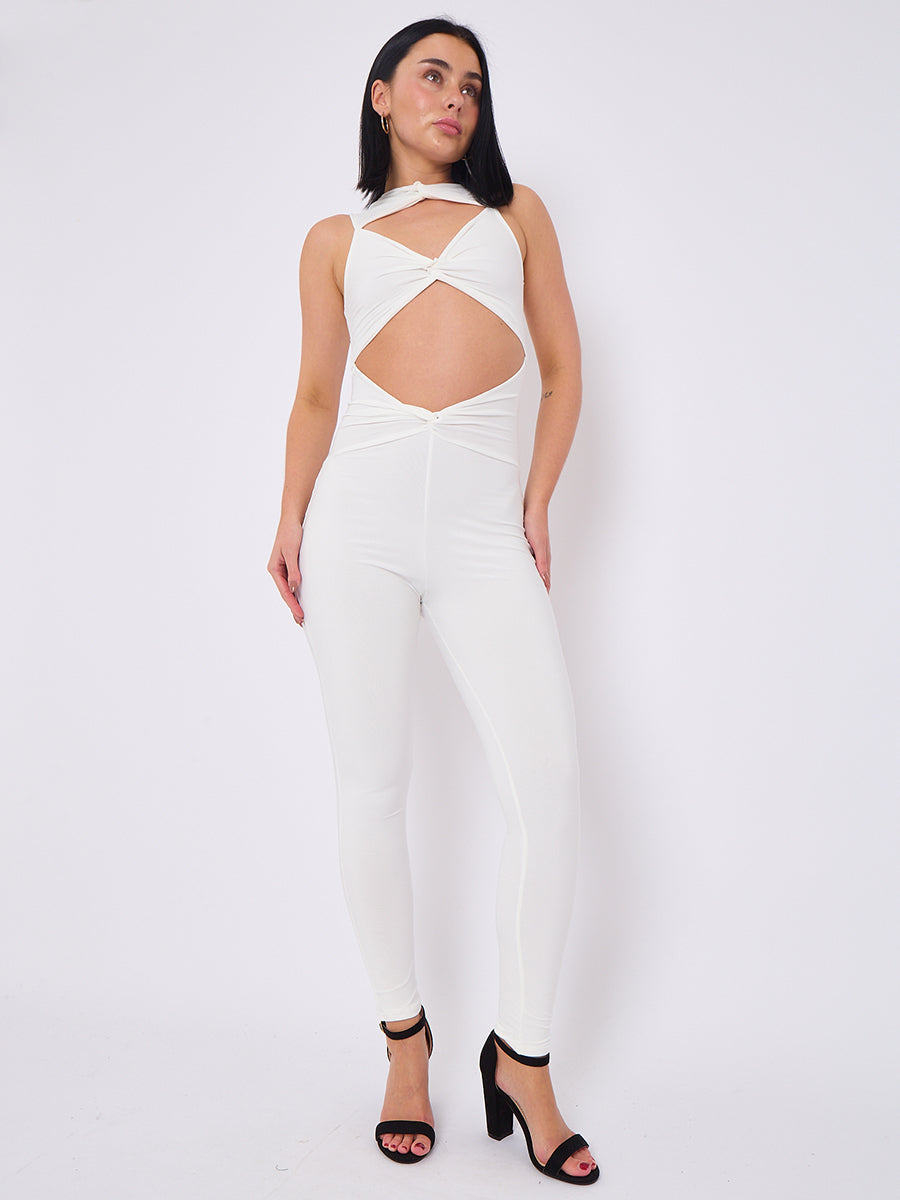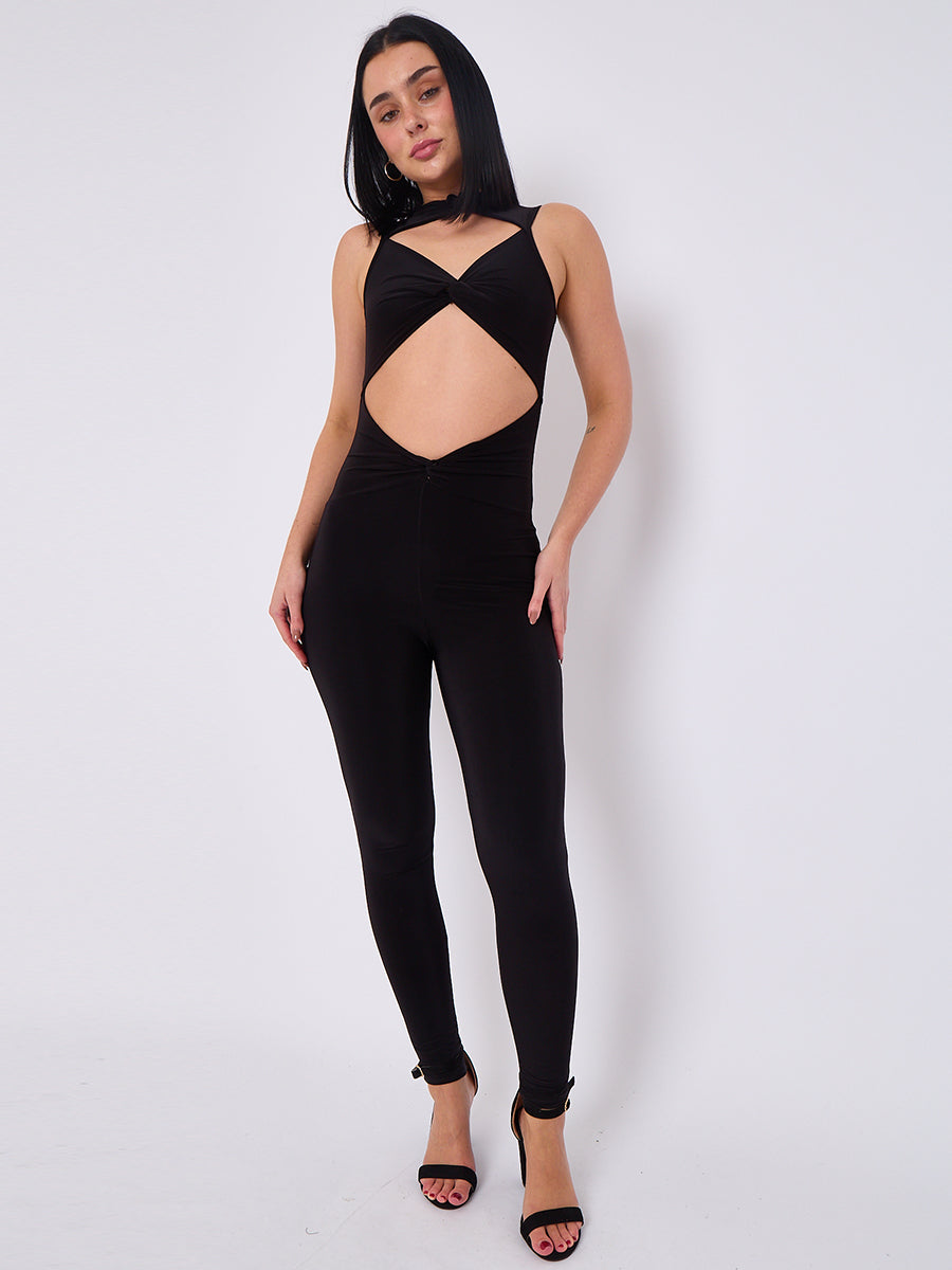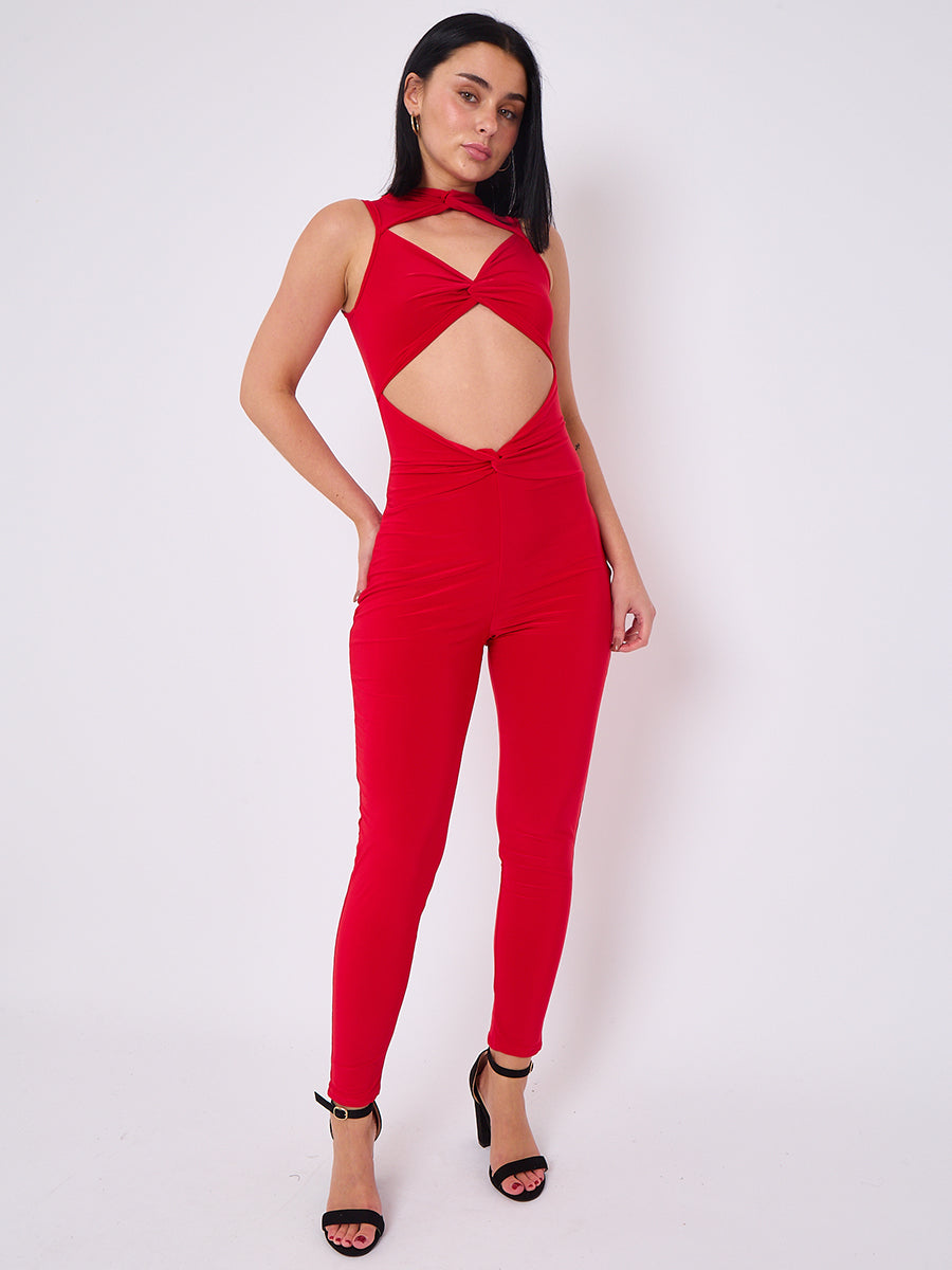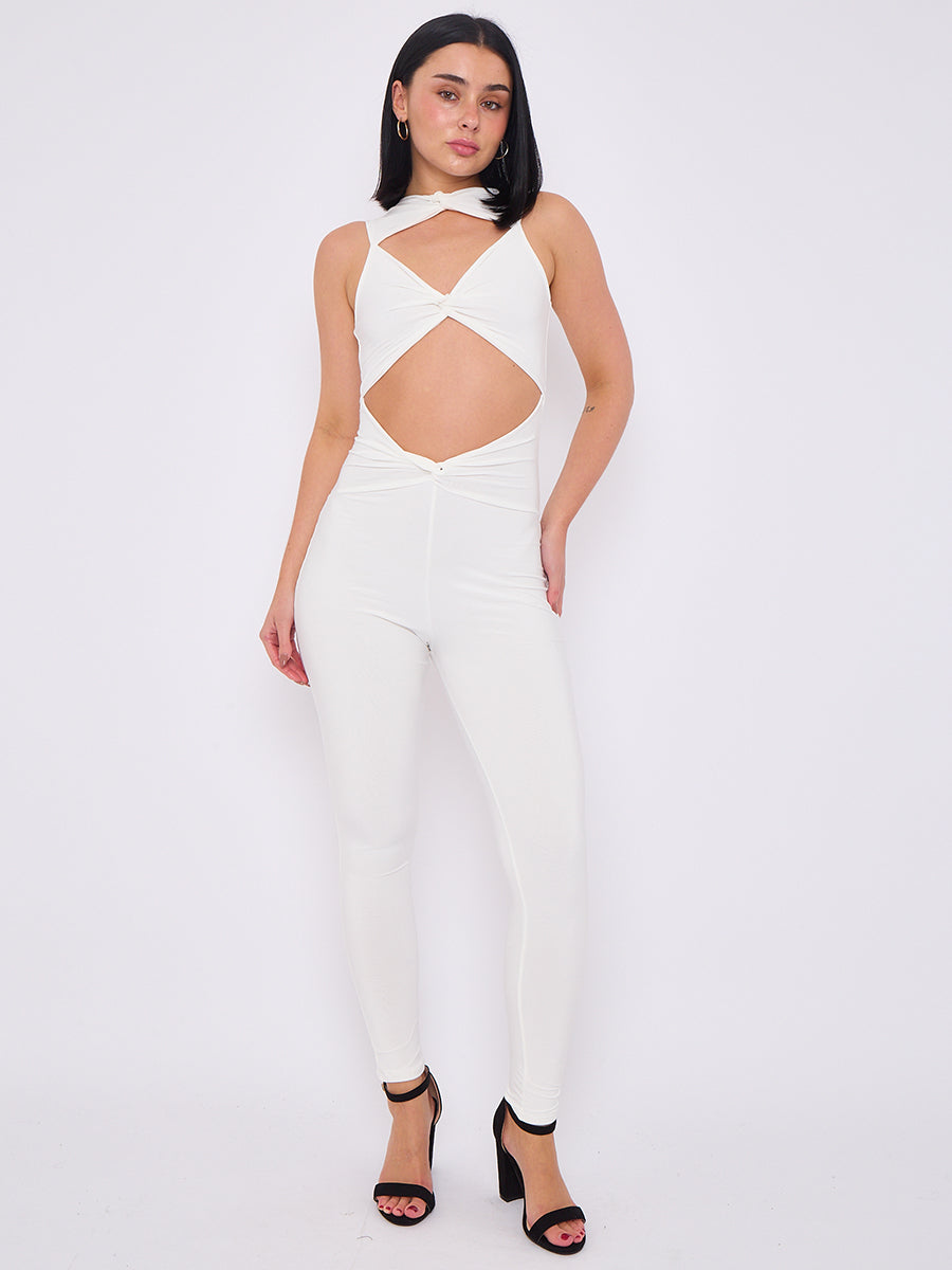 Tie Knot Detail Cut Out Slinky Jumpsuit