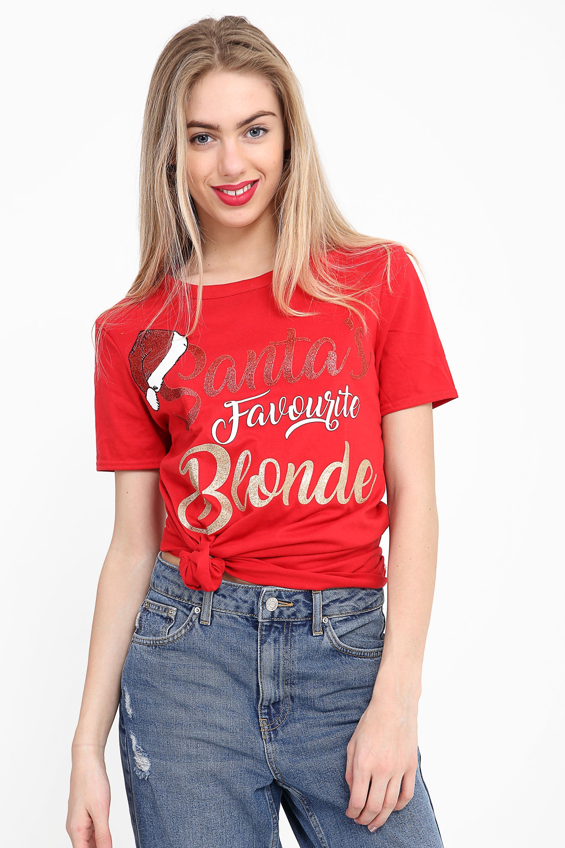 Impresión de eslogan rubio favorita de Santa con detalles de brillo