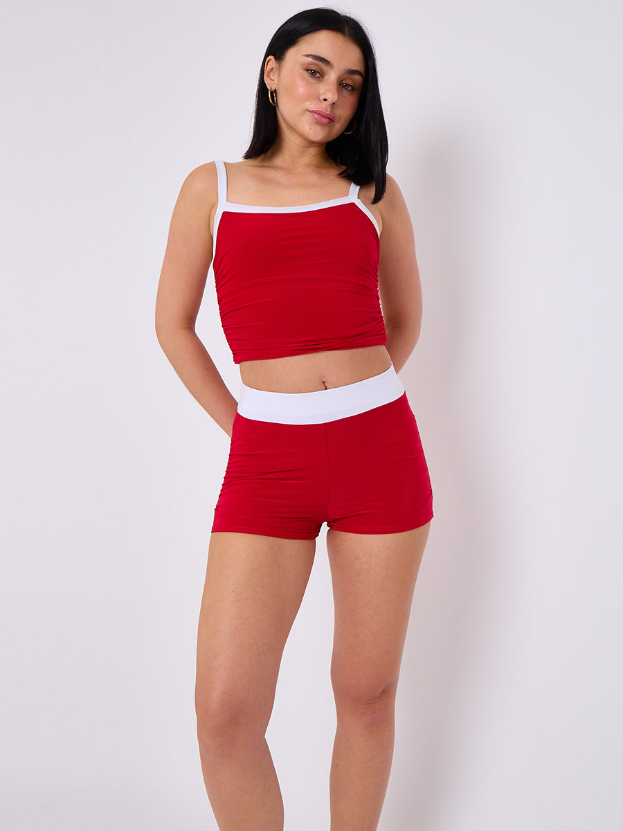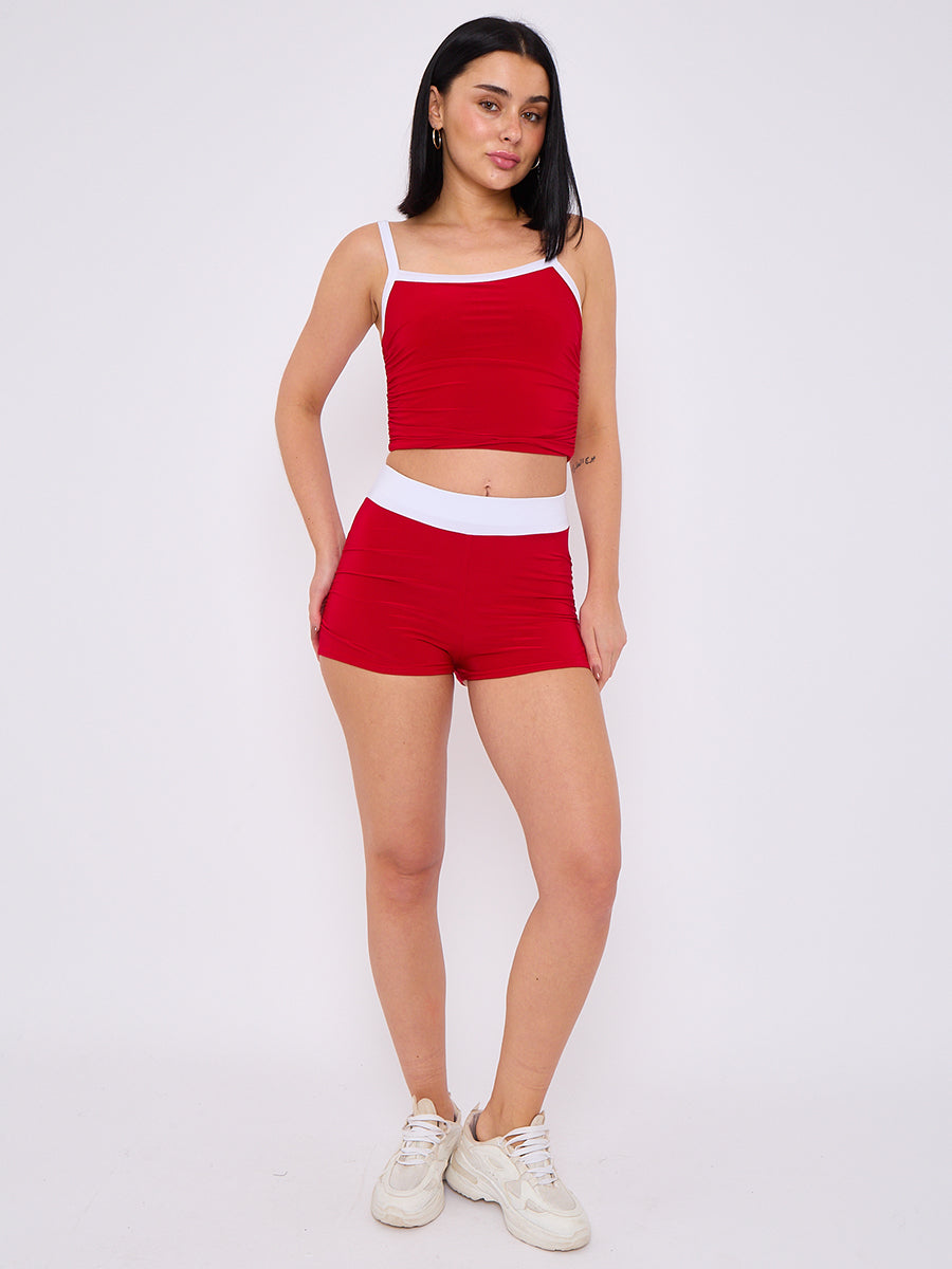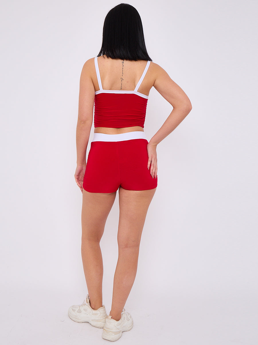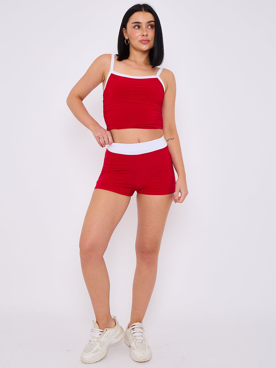 Contrast Trim Slinky Crop Top & Skirt Coord