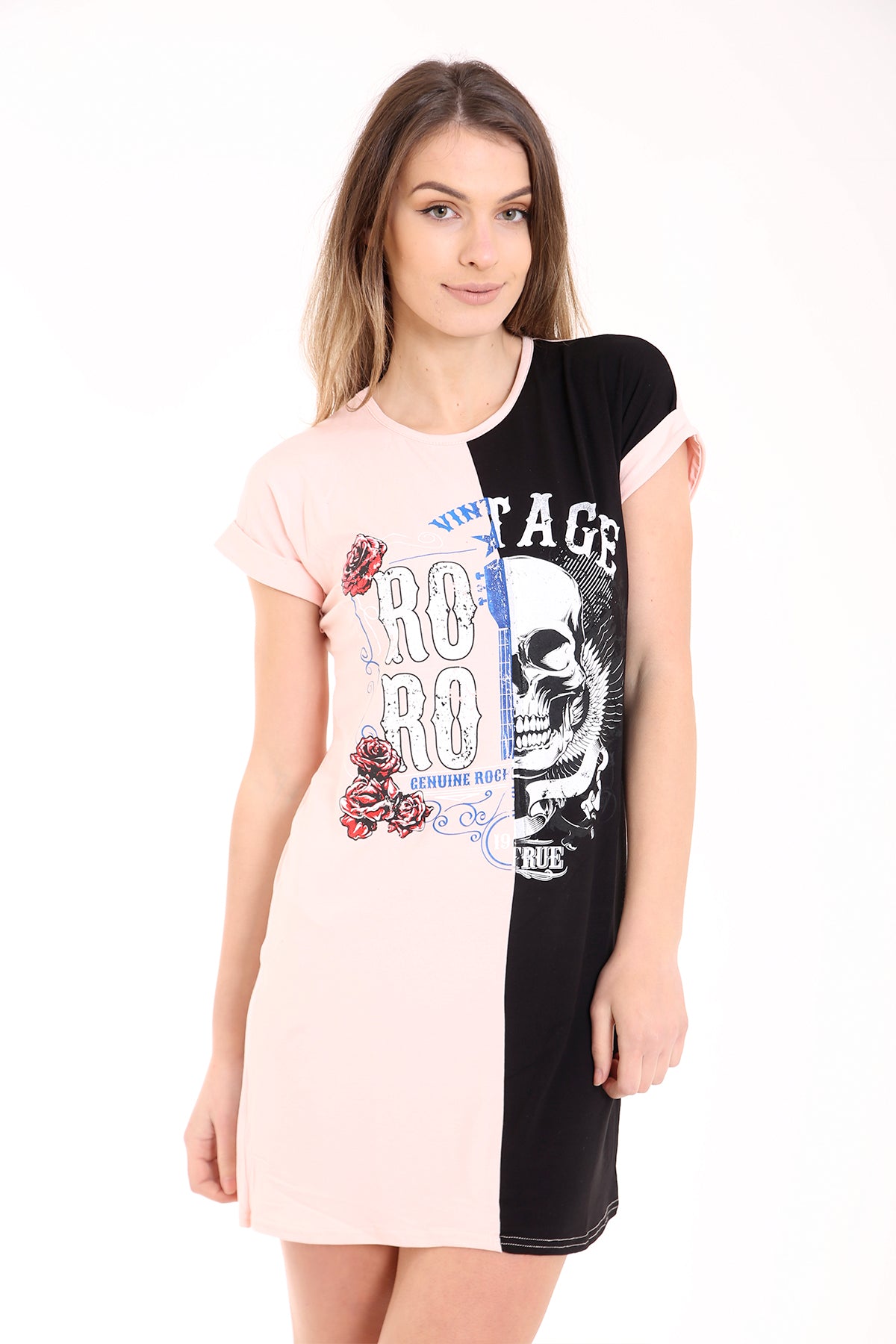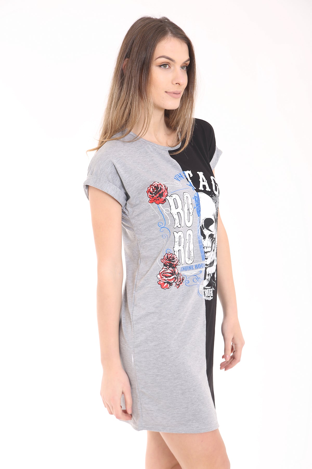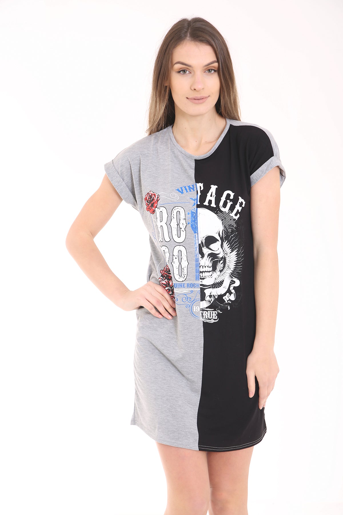 Contrasto Vintage Skull Impreso Longline T Shirt Vestido