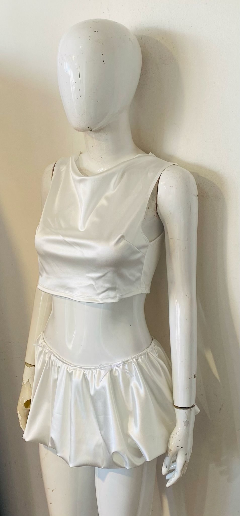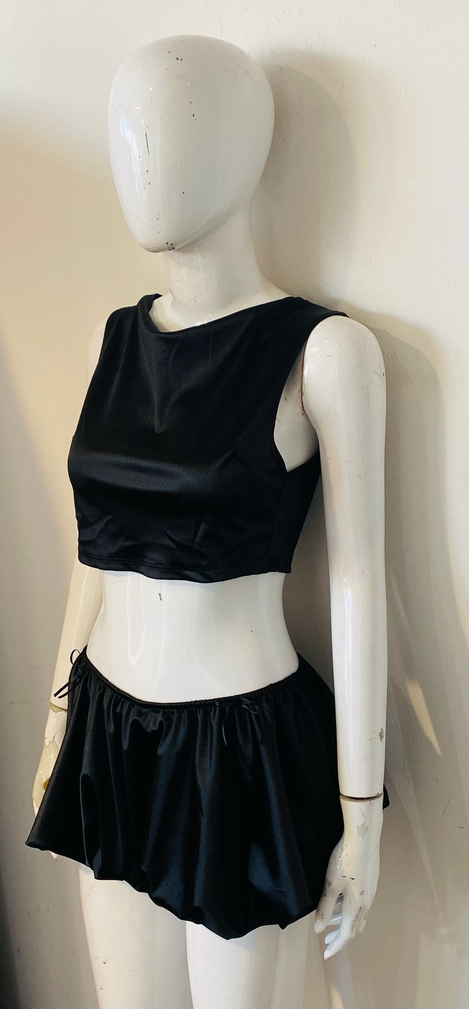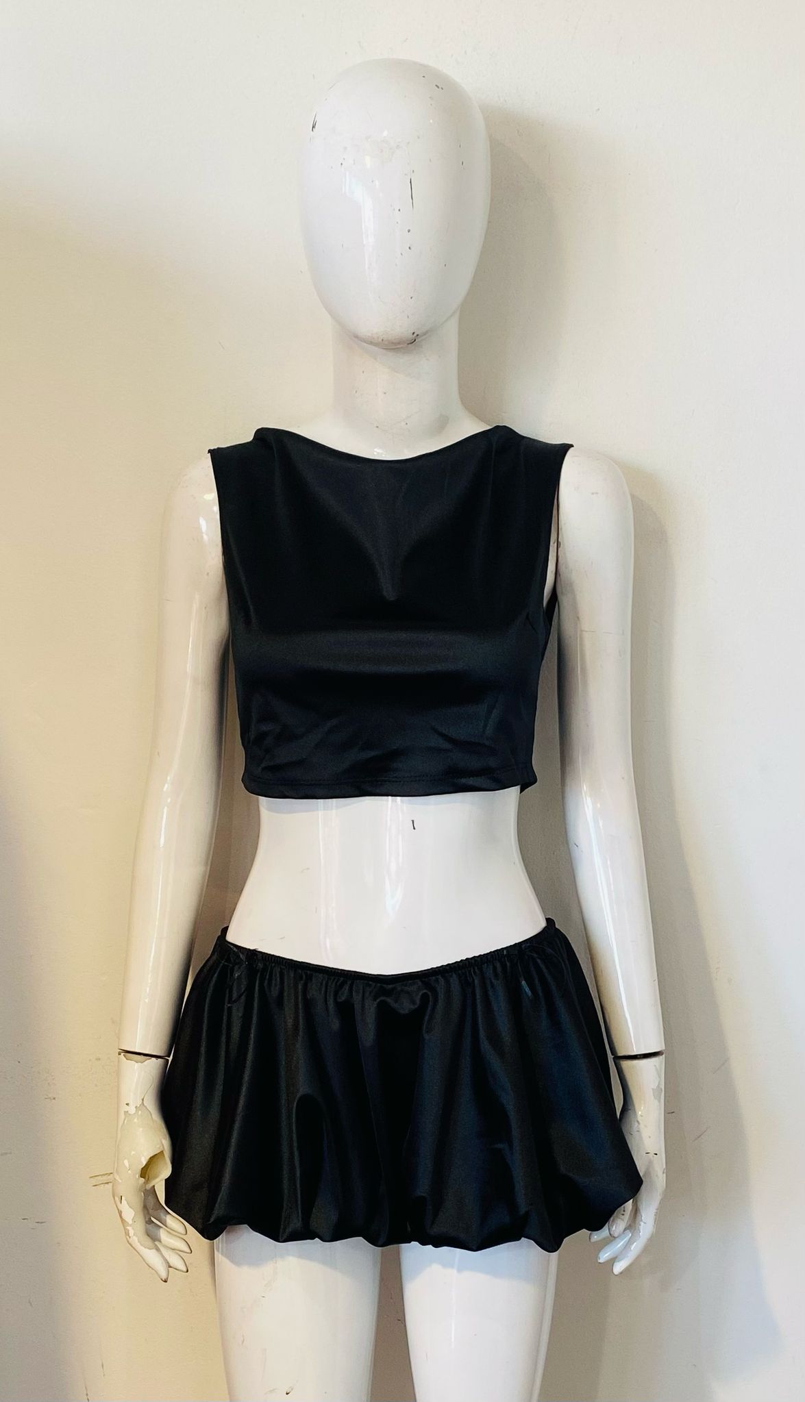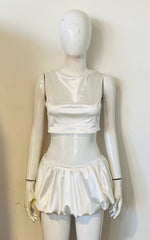 Satin Crop Top & Puffball Mini Skirt Coord