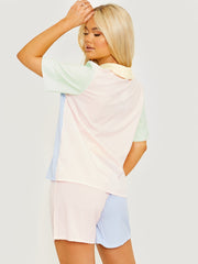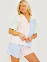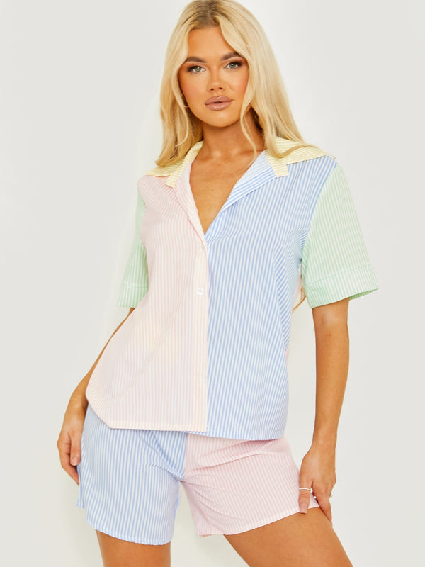 Coordina de camisa y pantalones cortos de rayas múltiples