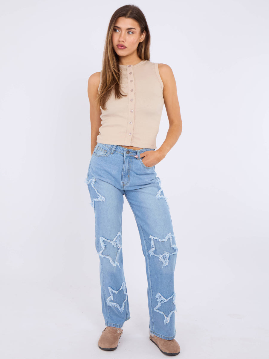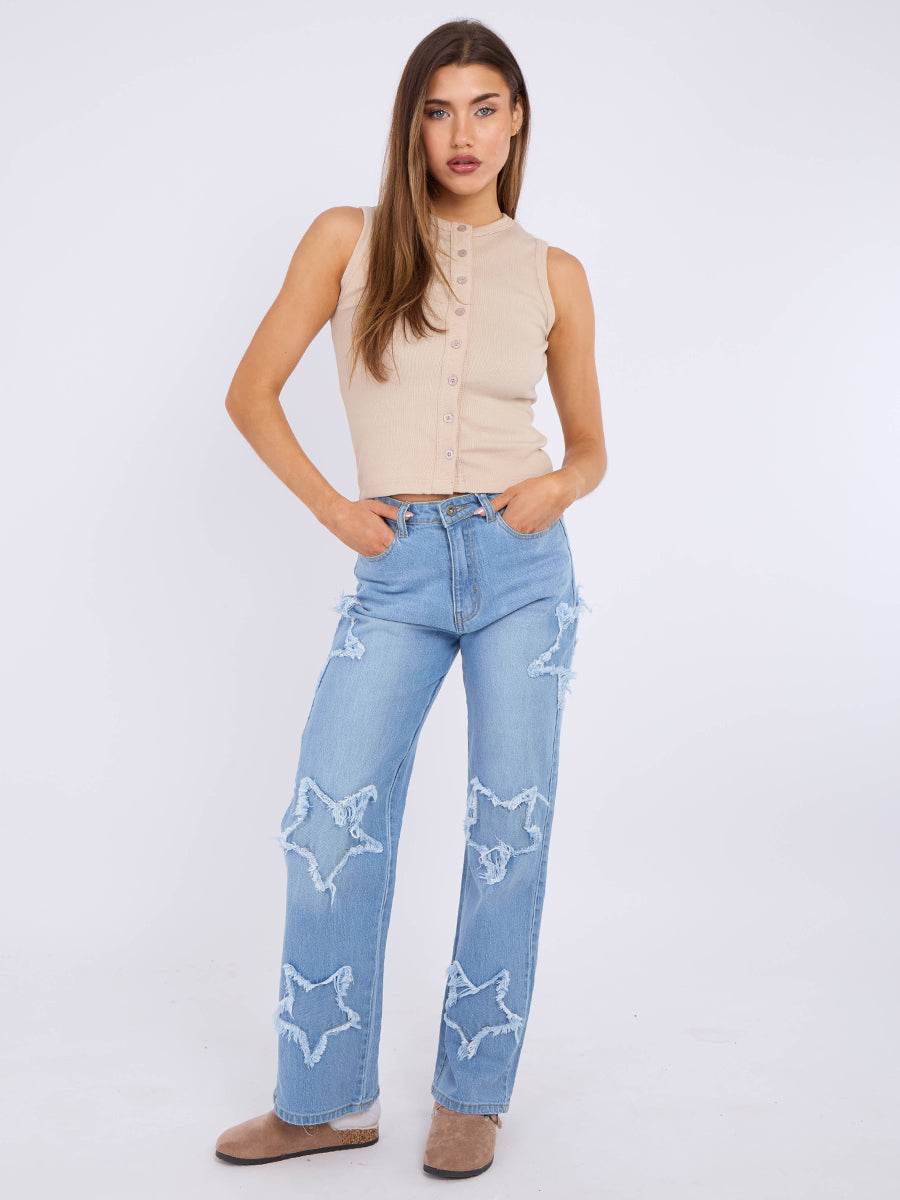 Crucifijo jeans de mezclilla recta bordada
