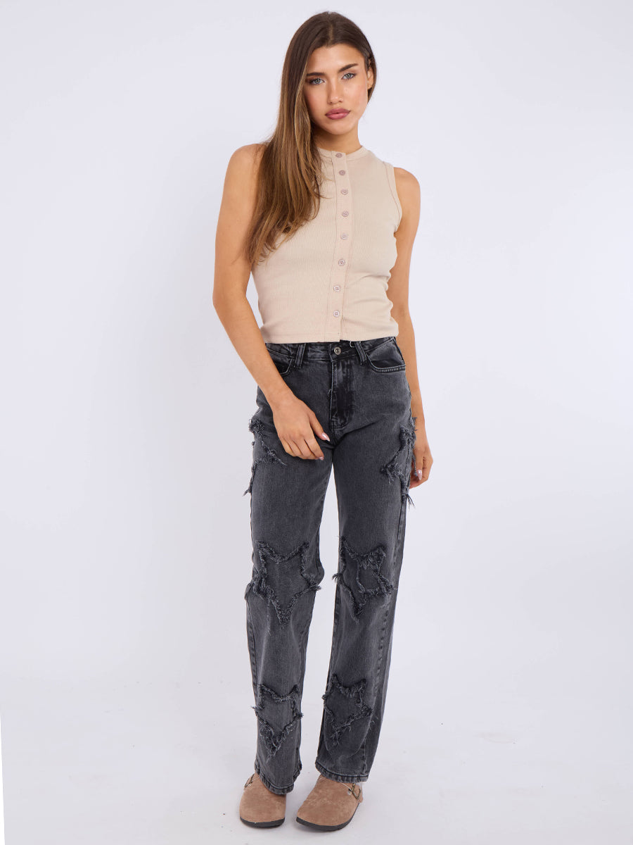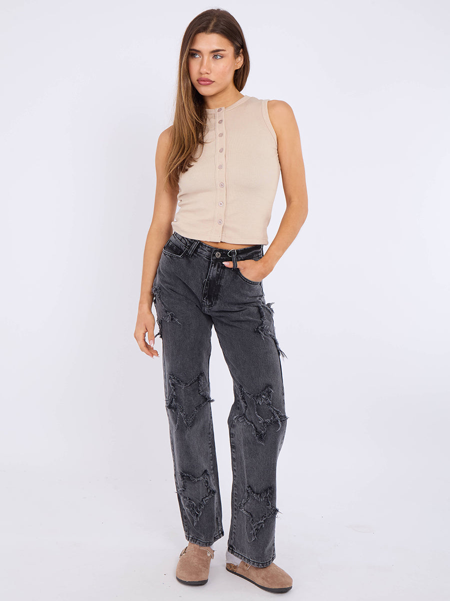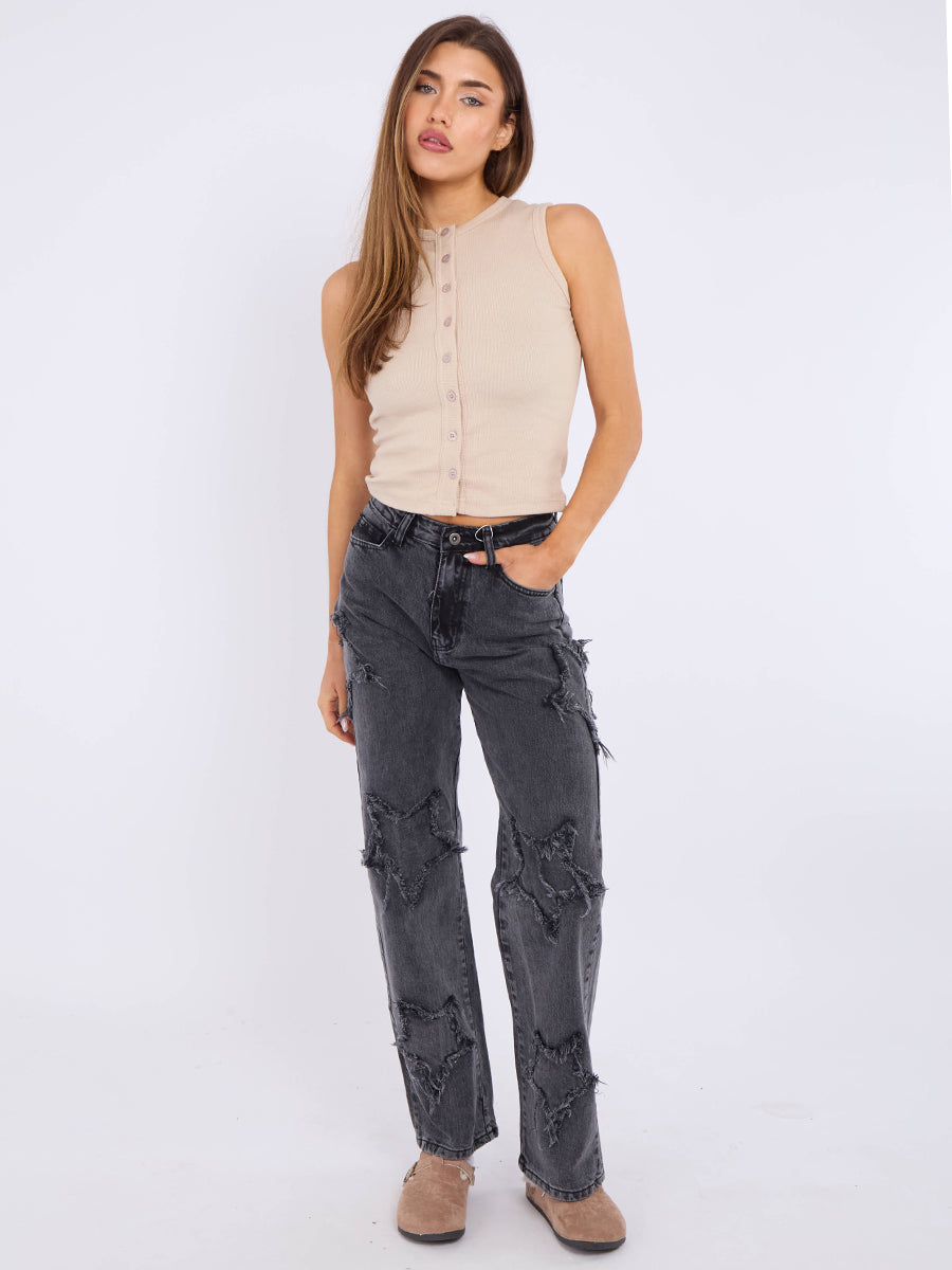 Crucifix Jeans de mezclilla de pierna recta bordada (copia)