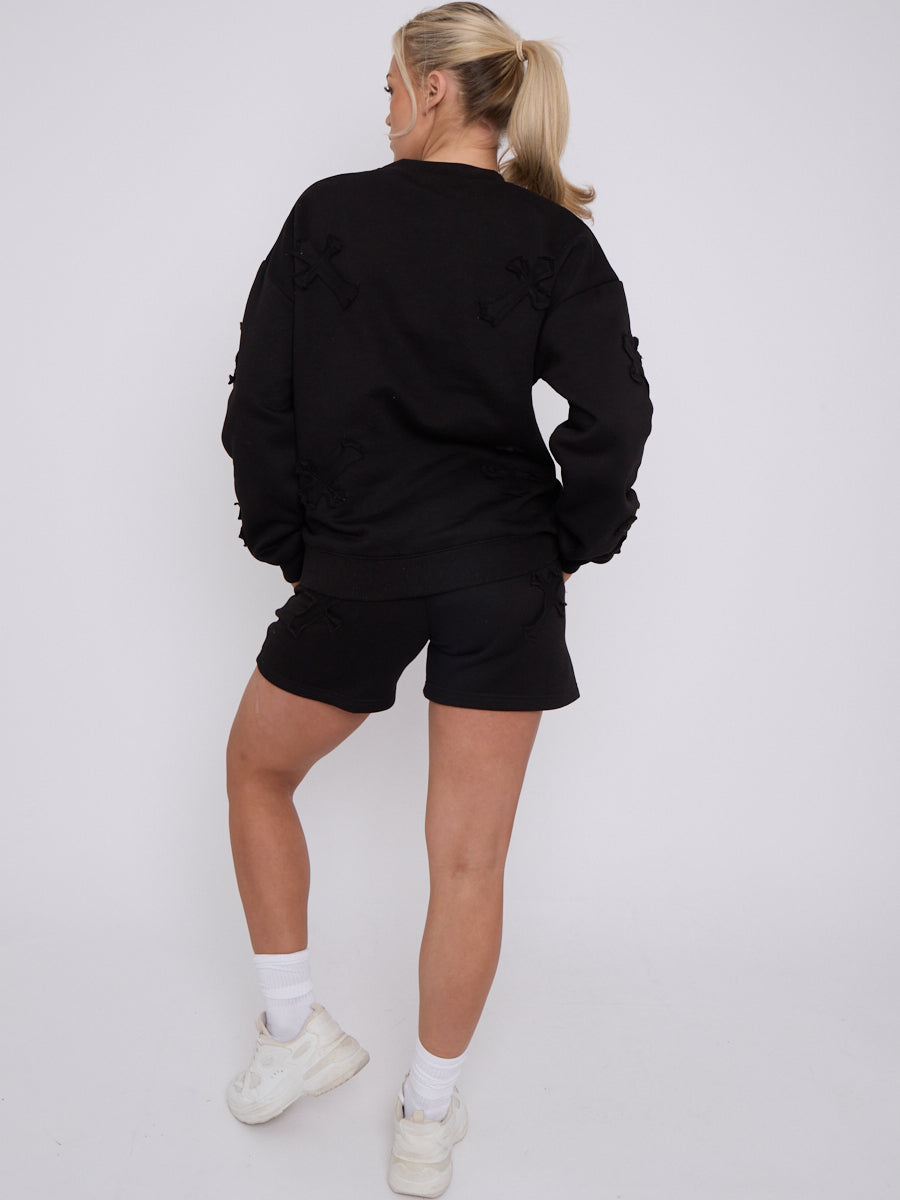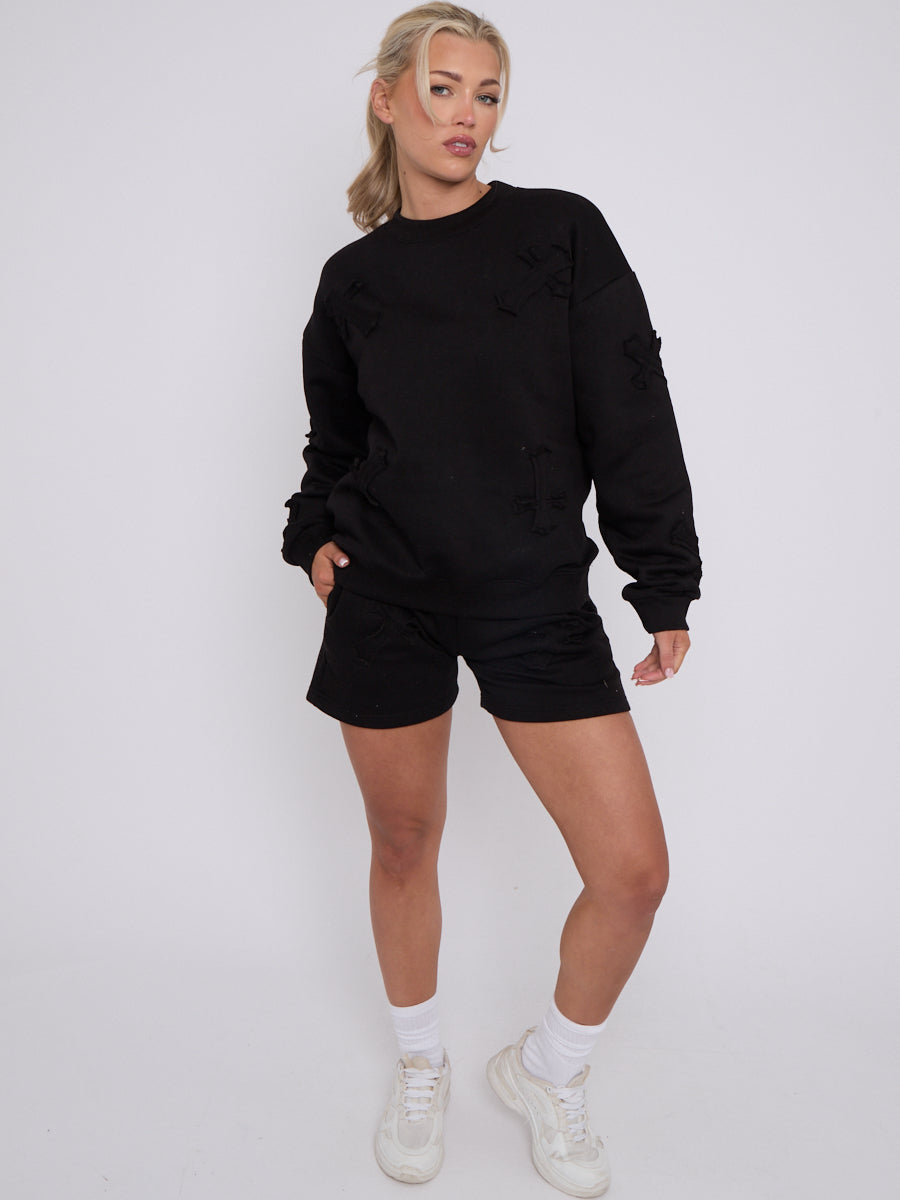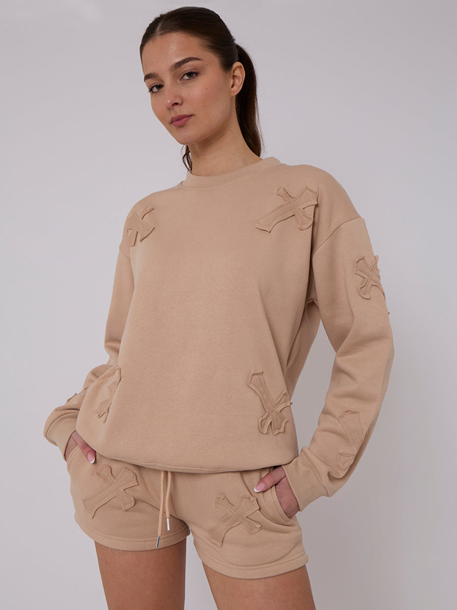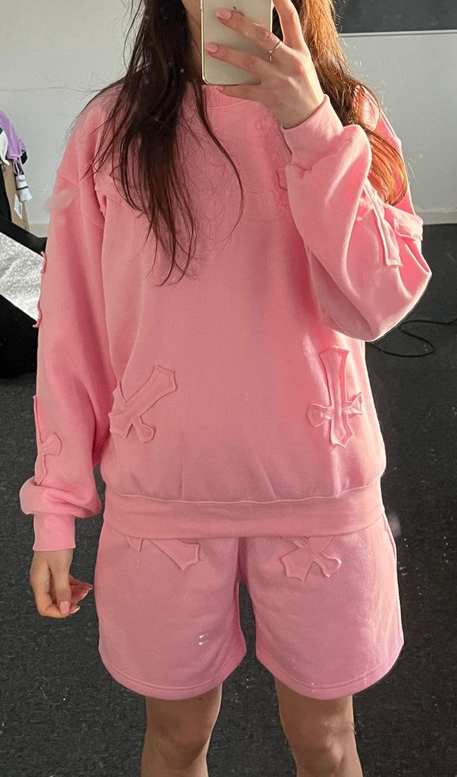 Crucifix Sweined Sweinshirt & Shorts Fleece Coord