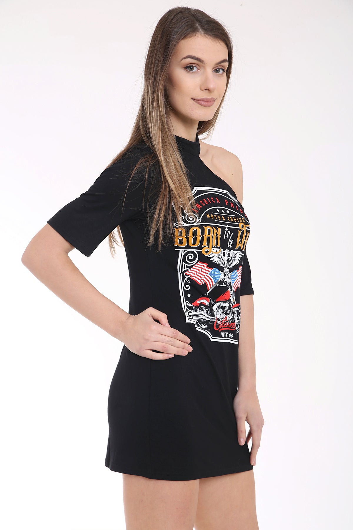 Nacido para ser el vestido de camiseta de larga impresa en la bizca salvaje