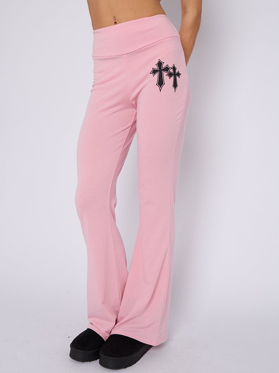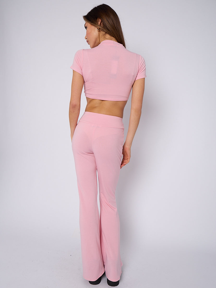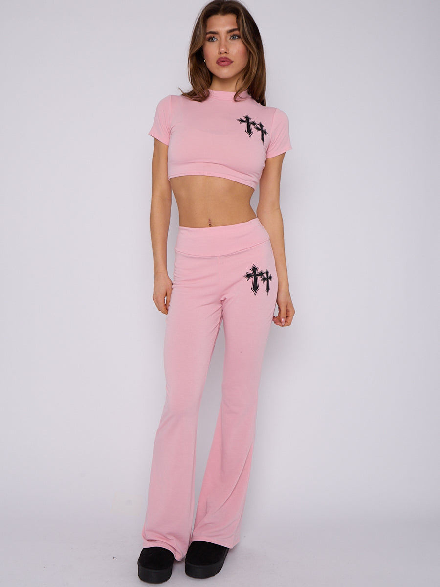Crucifix Detalle Crop Top & Flare pantalón coordenada