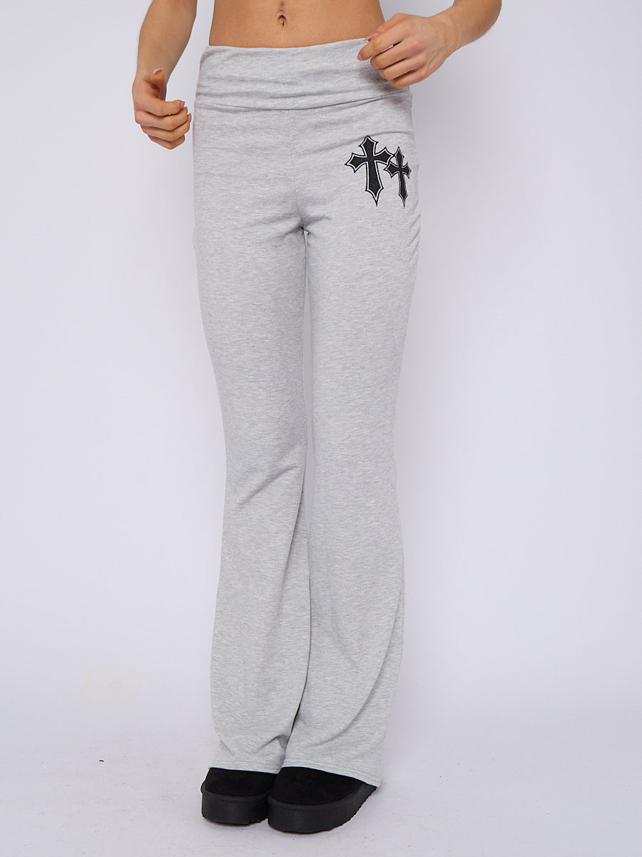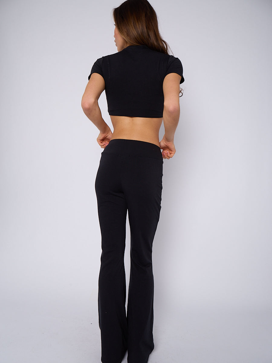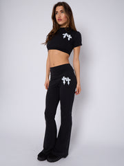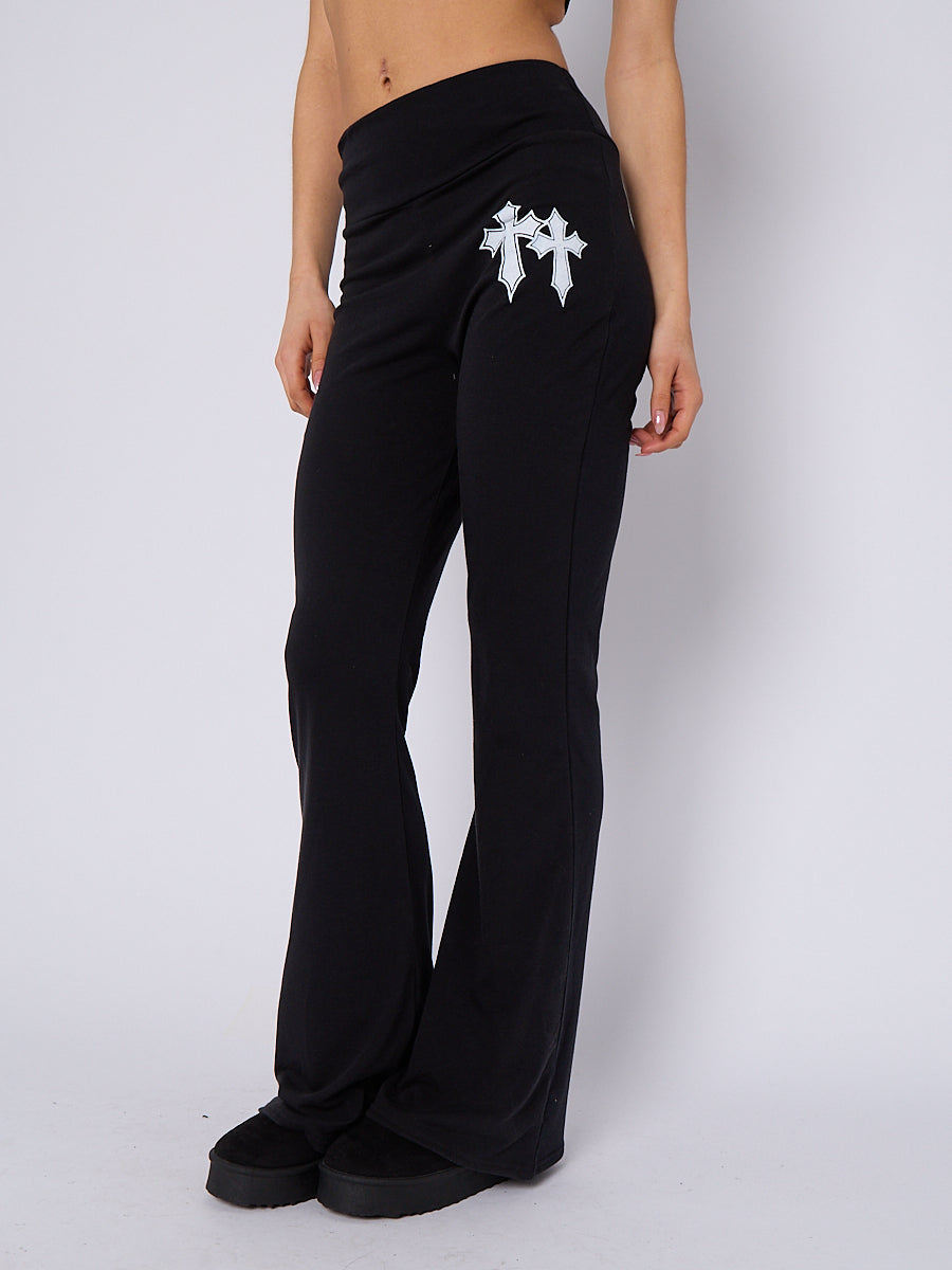 Crucifix Detalle Crop Top & Flare pantalón coordenada