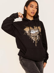 Sudadera con lipes de impresión gráfica de labios con brillo