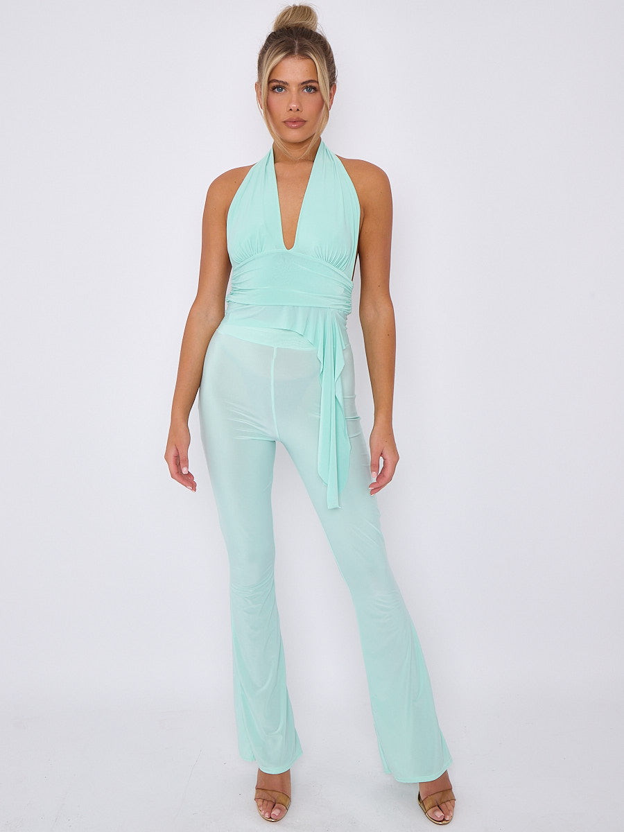 Tapa de recorte de cuello halter de halter con detalle de volante