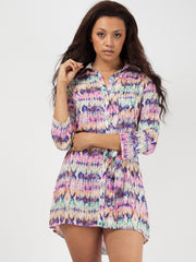 Vestido de camisa de cintura con corbata de estampado de serpiente de mosaico