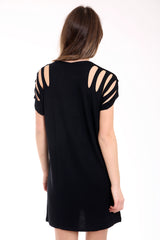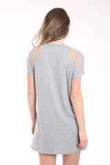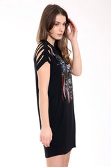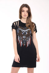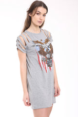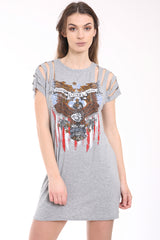Vestido de camiseta de longline estampado en manga por manga cortada