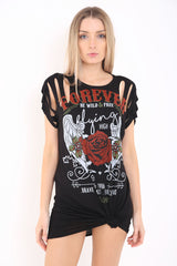 Vestido de camiseta Longline de manga por siempre Rose para siempre Rose
