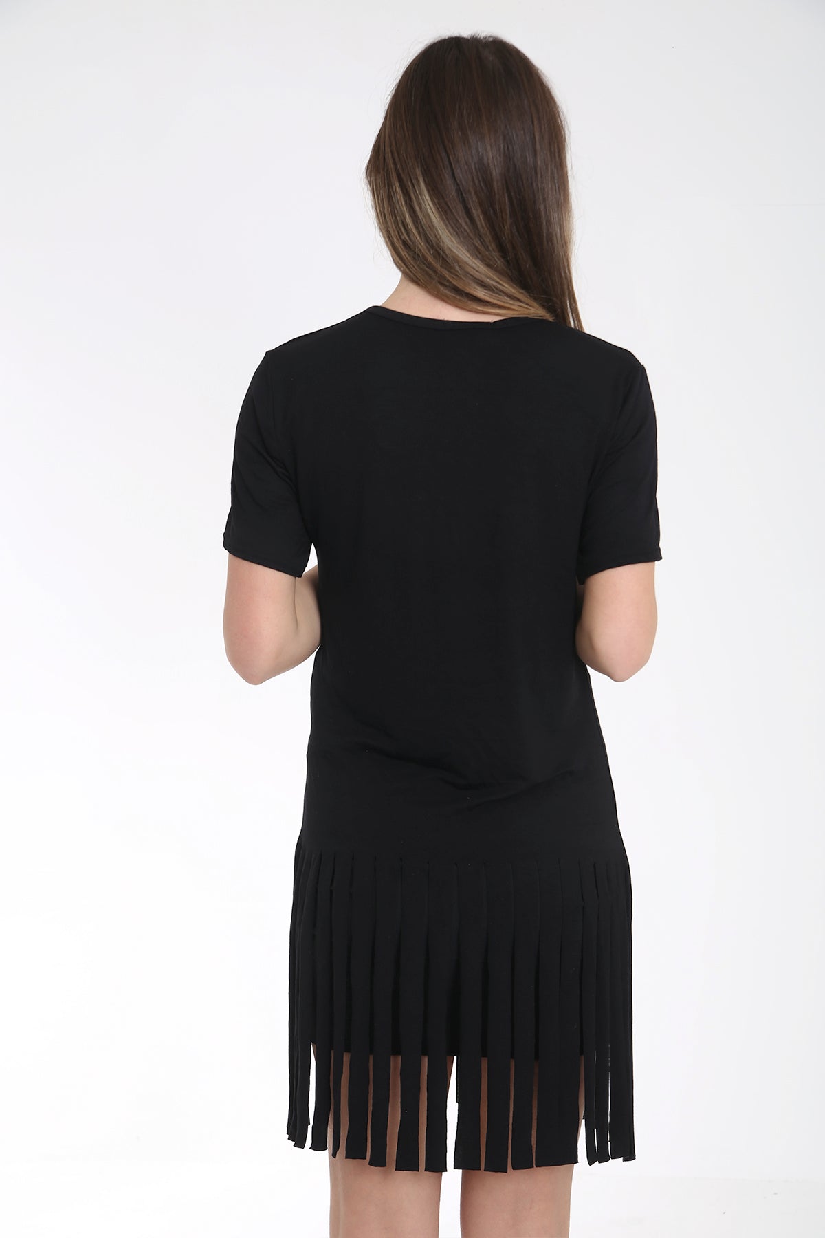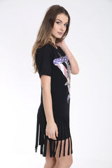 Vestido de camiseta impresa de Tassel Fringe Longline