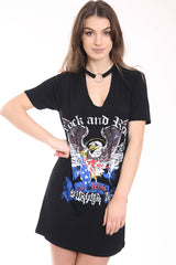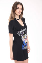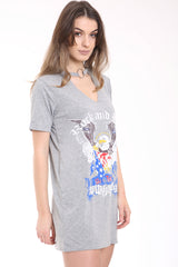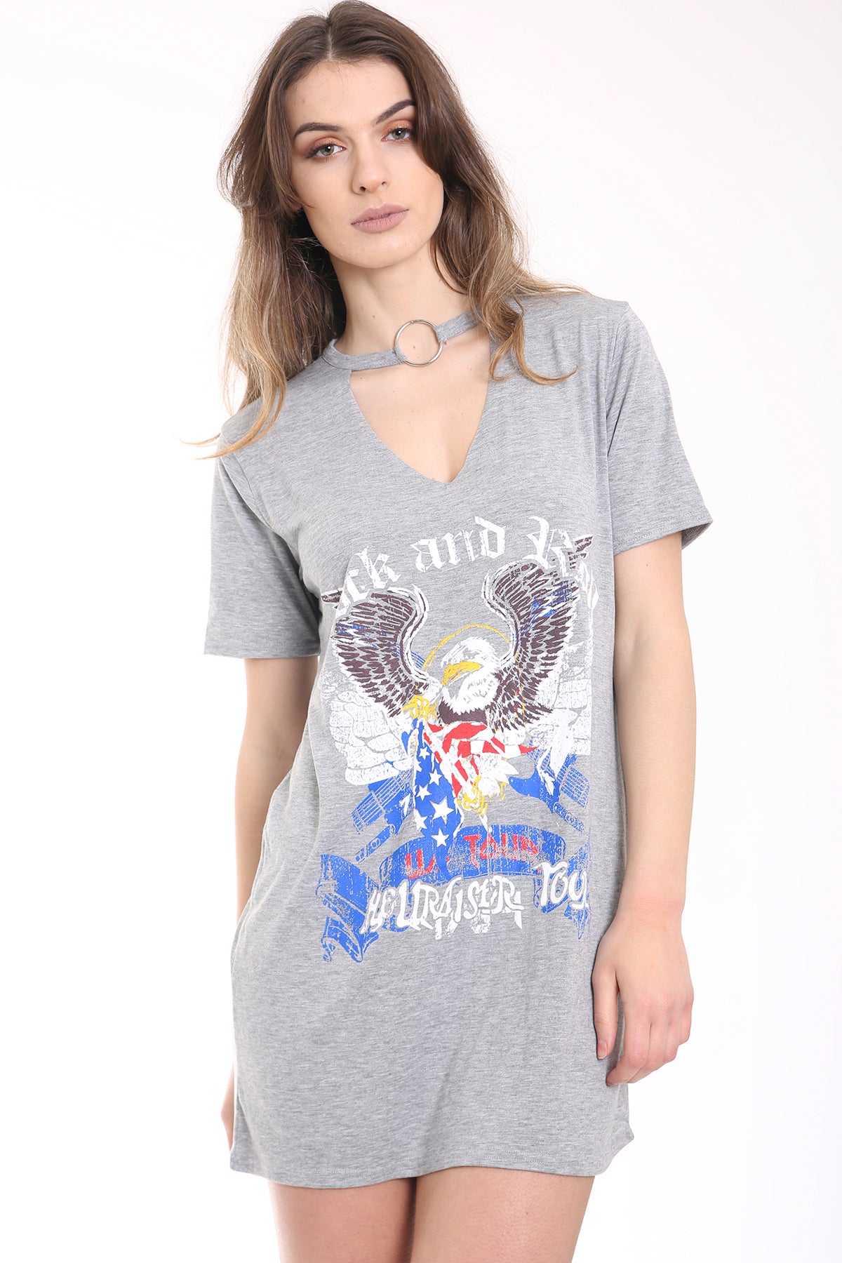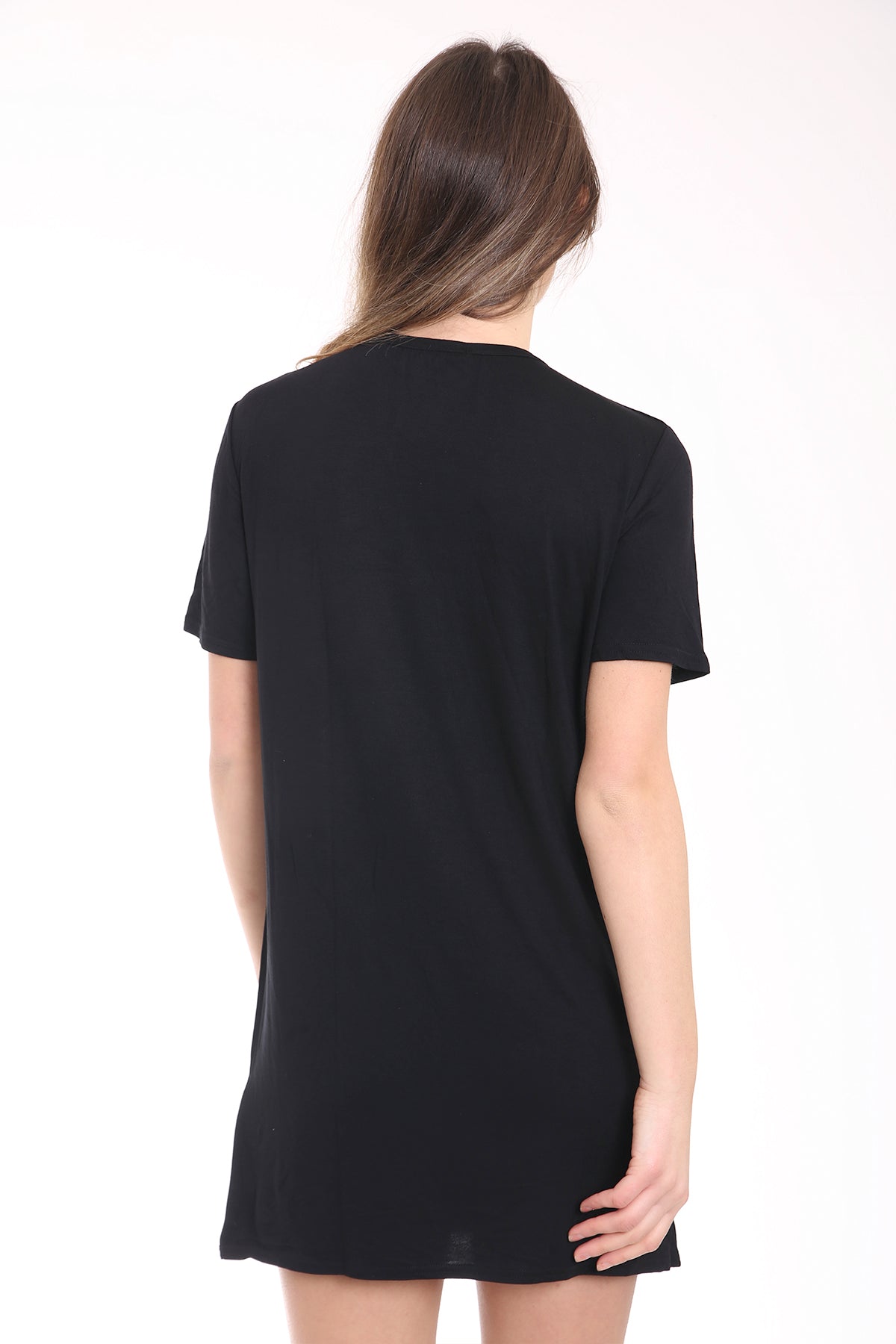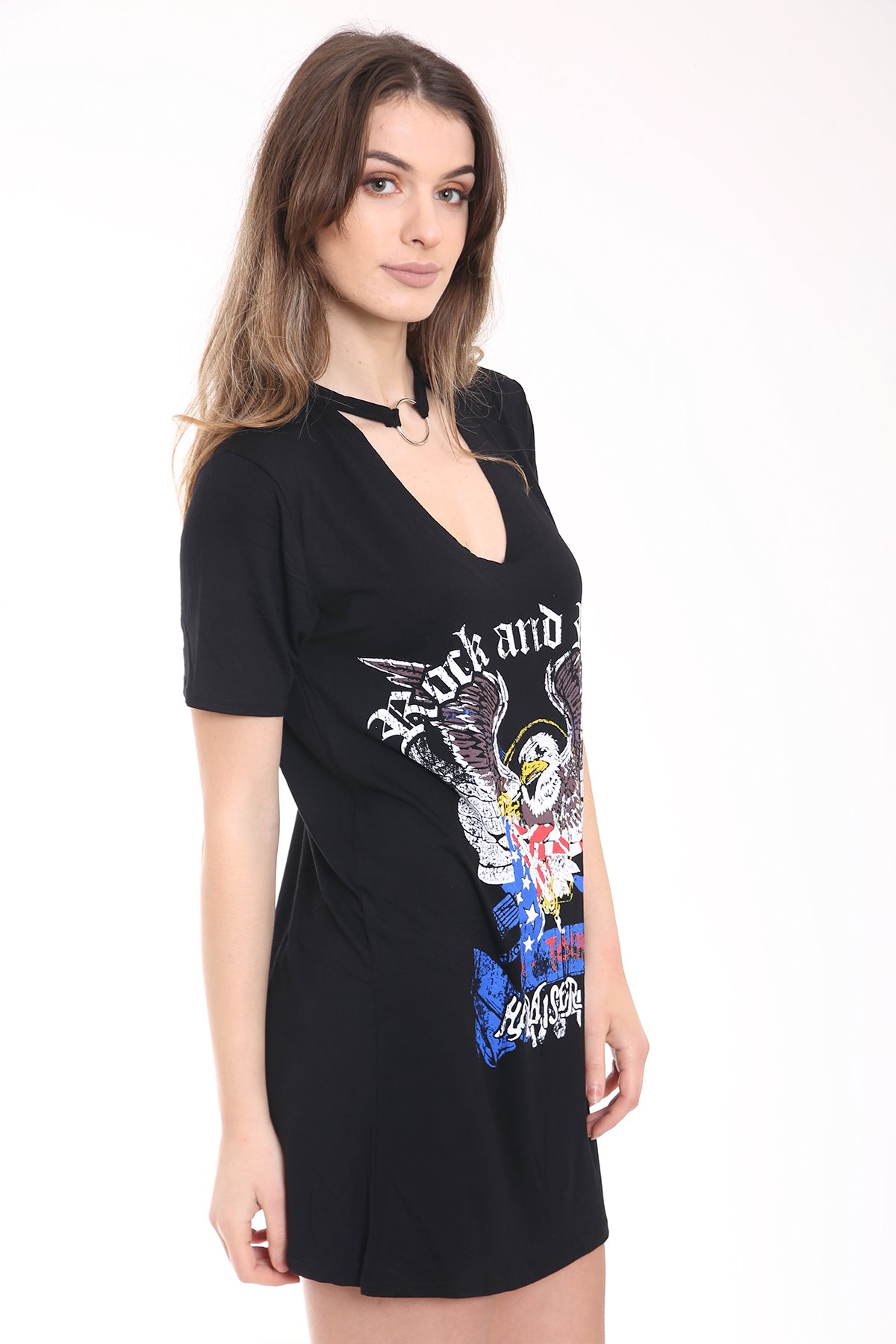 Vestido de camiseta Longline estampada con cuello de gargantilla de anillo