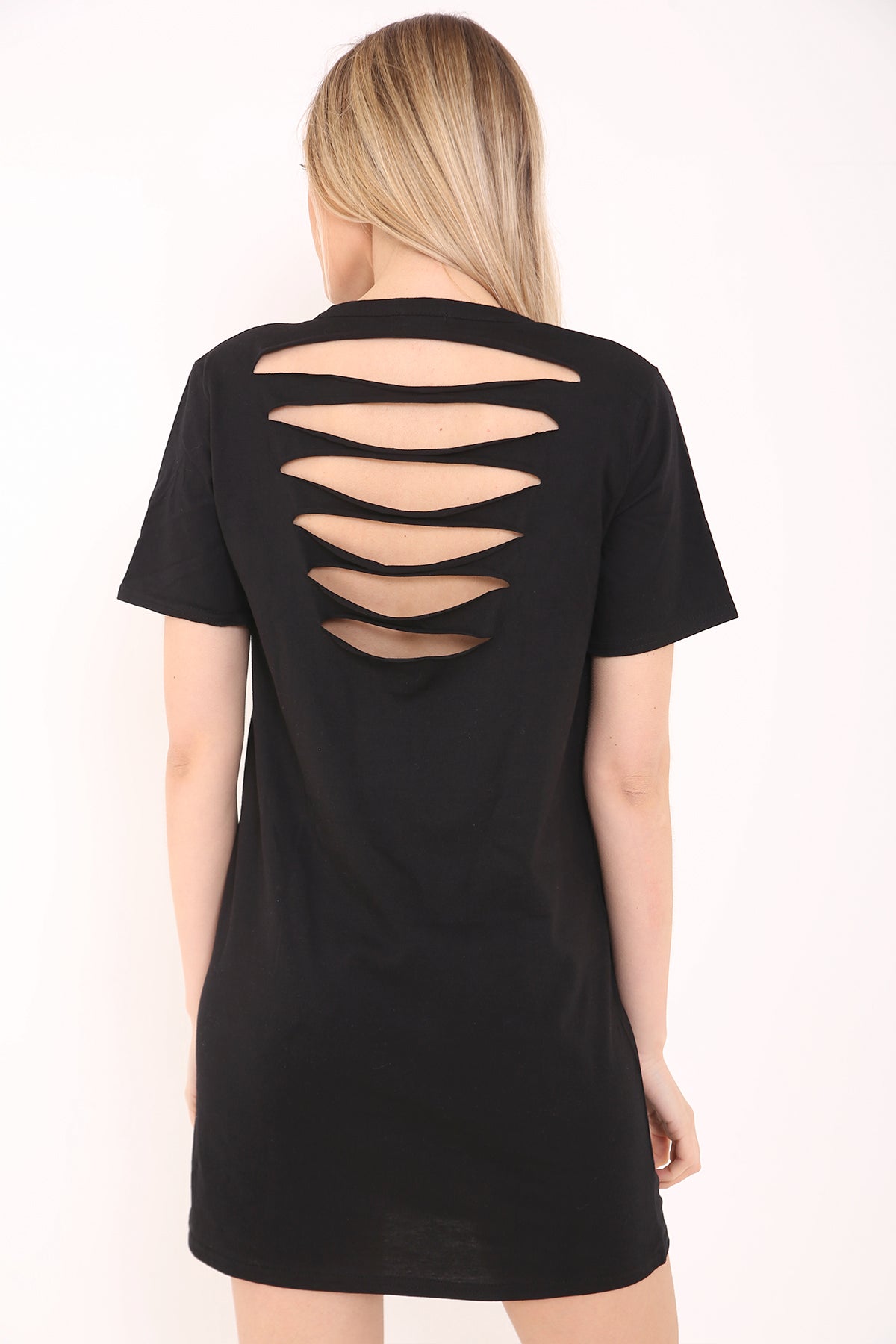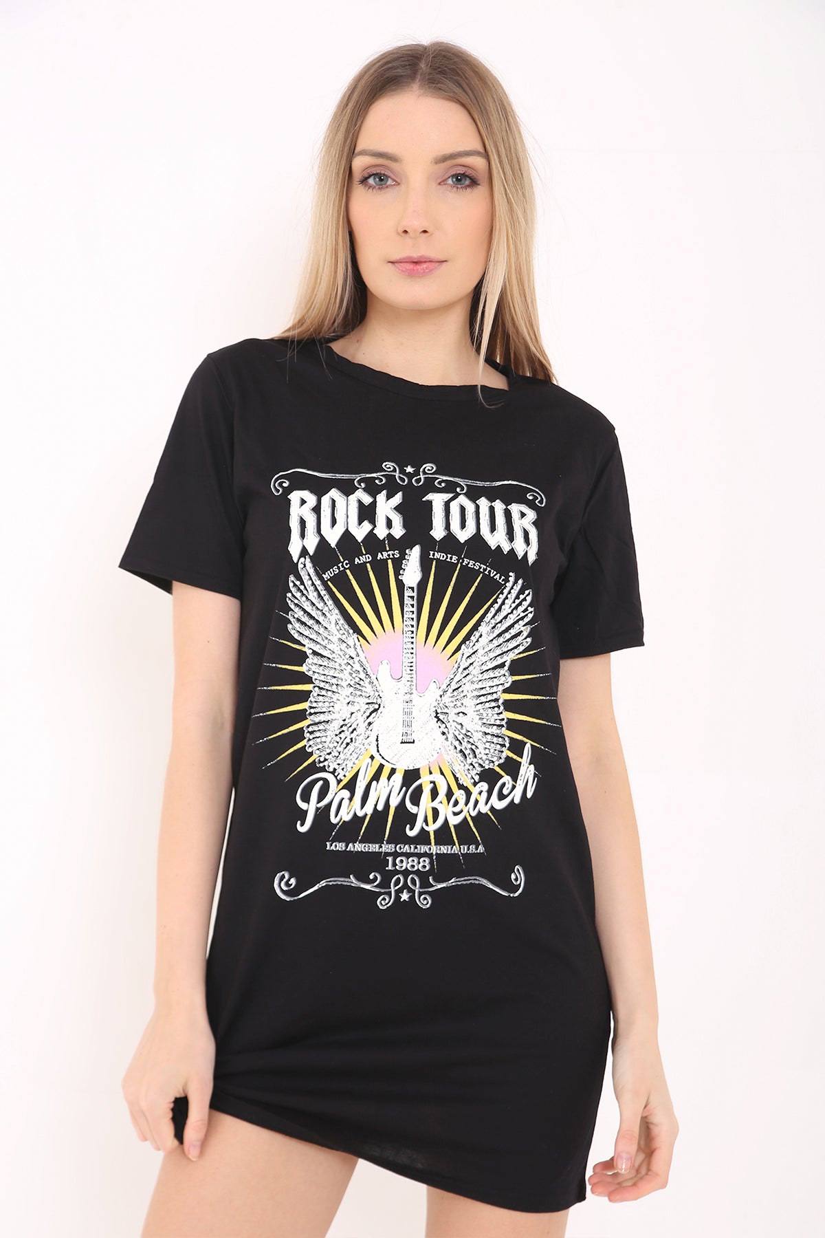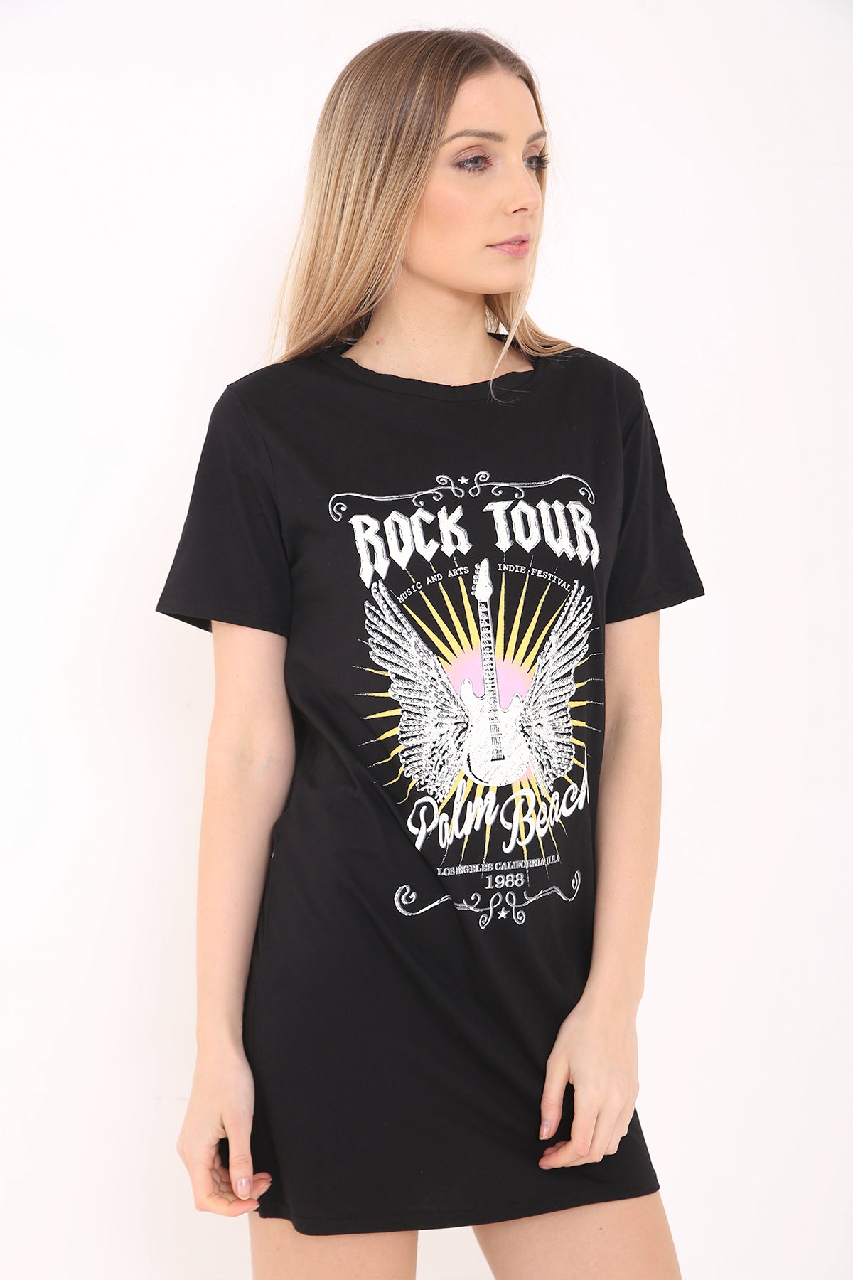 Vestido de camiseta Longline estampada con guitarra con tachuelas de barra