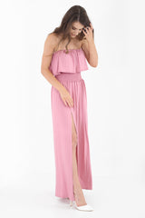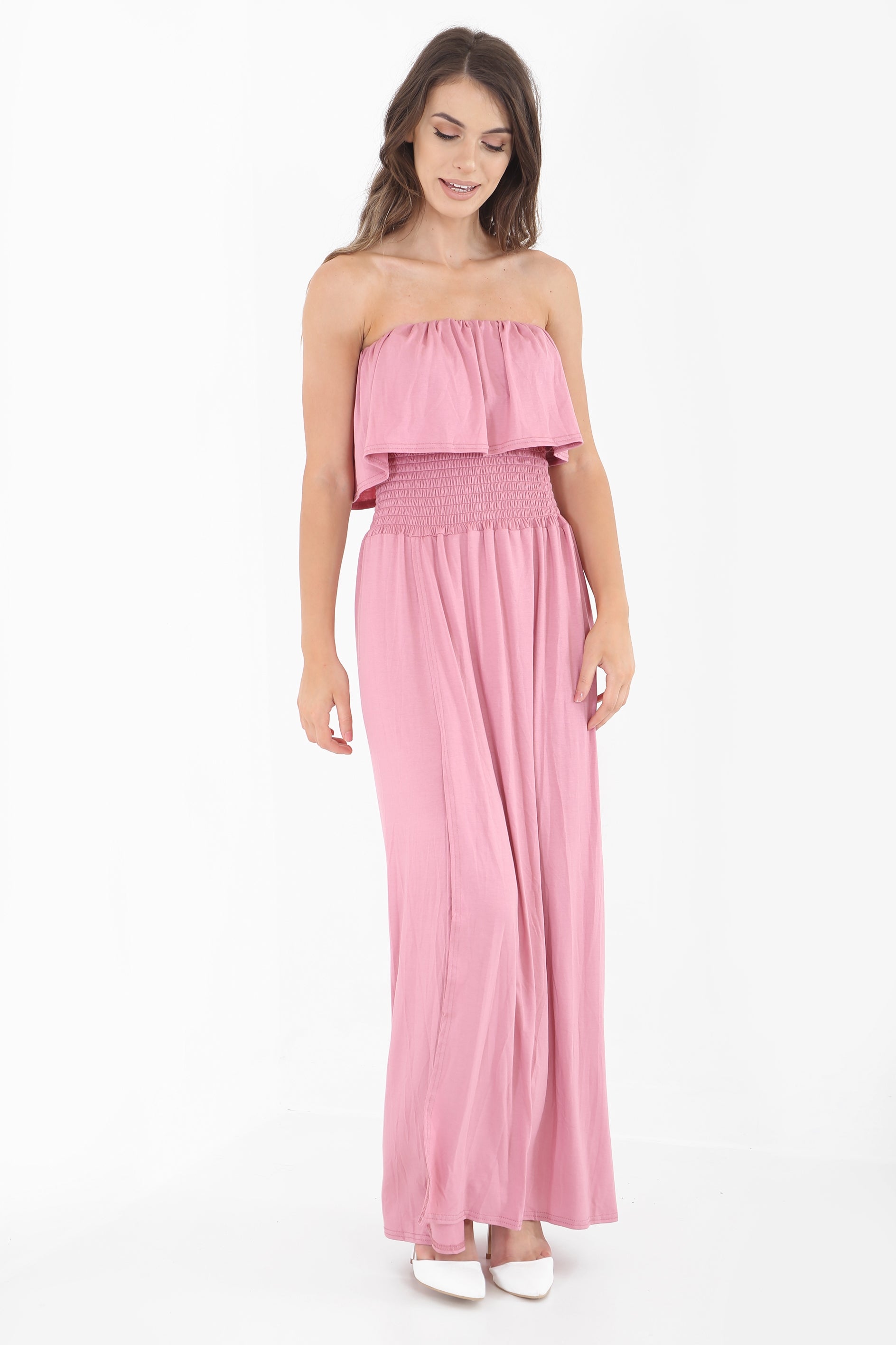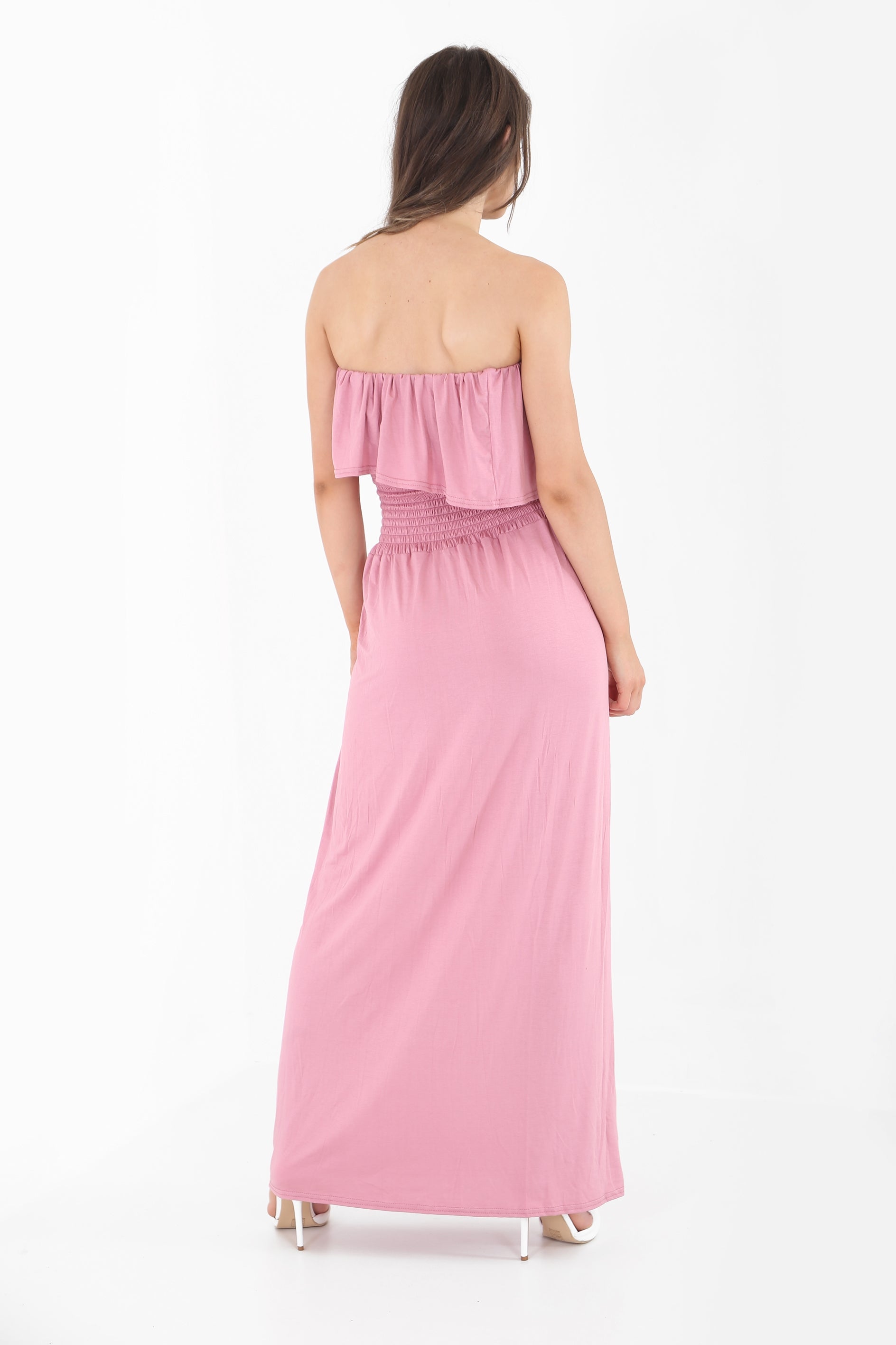 Vestido Maxi de Frill Bandeau Shirred Maxi