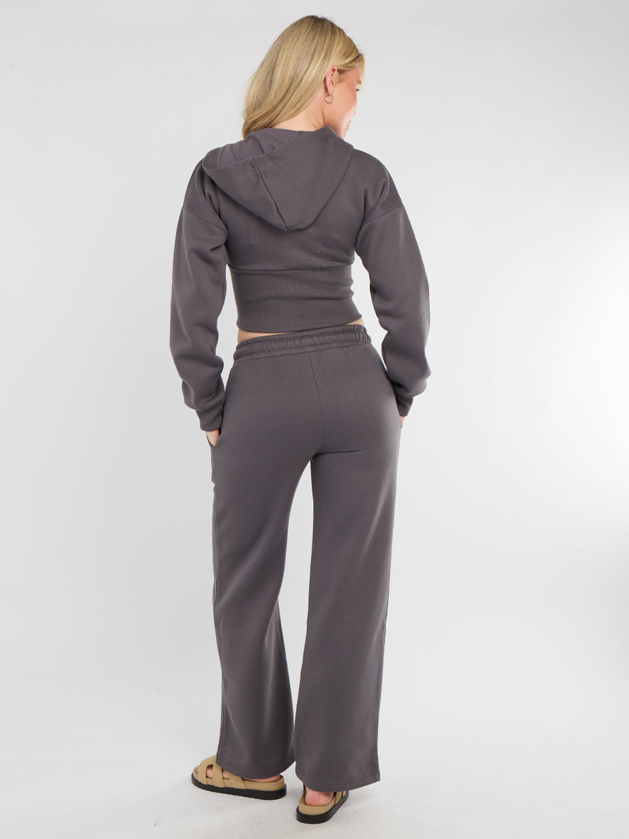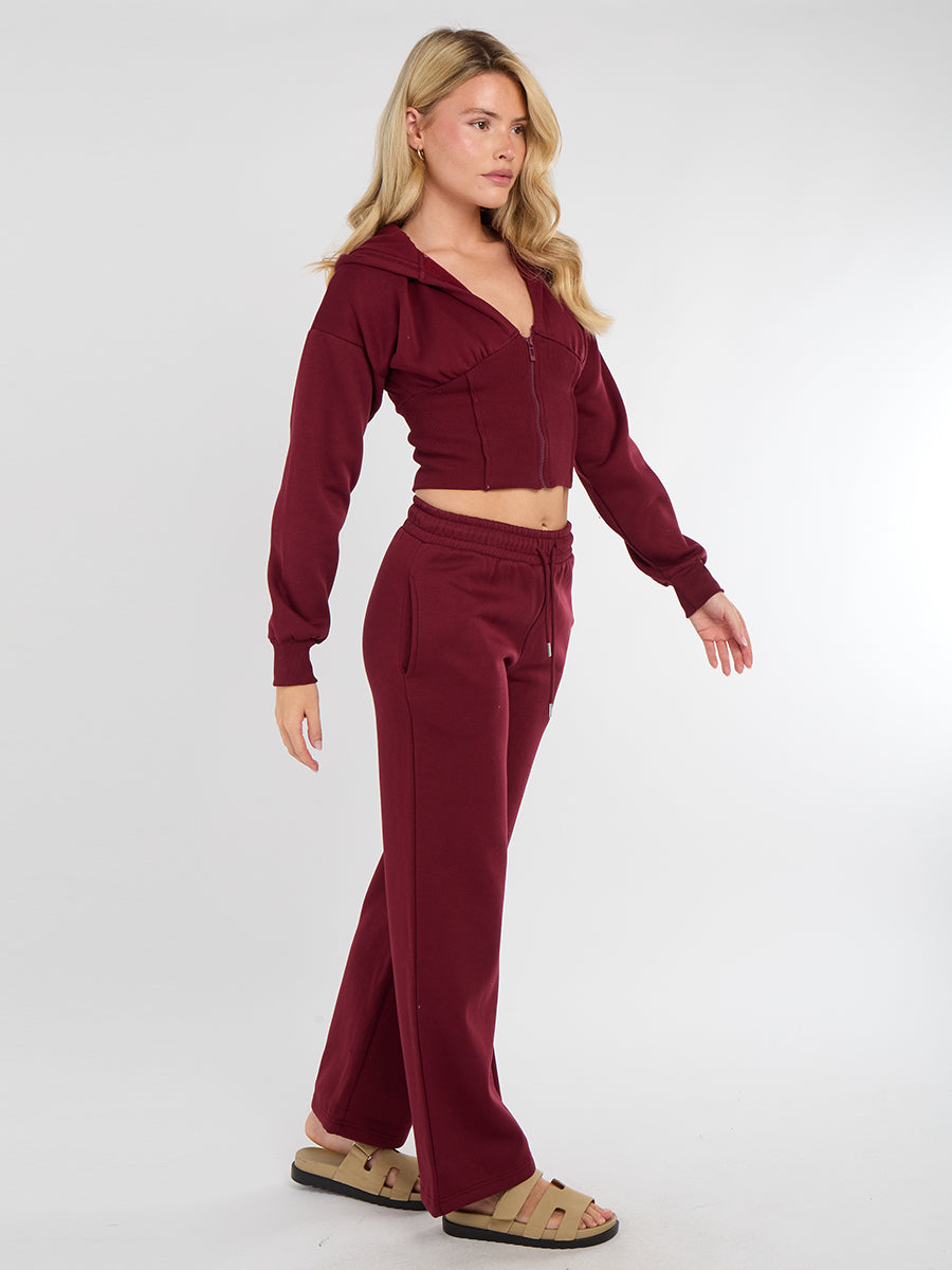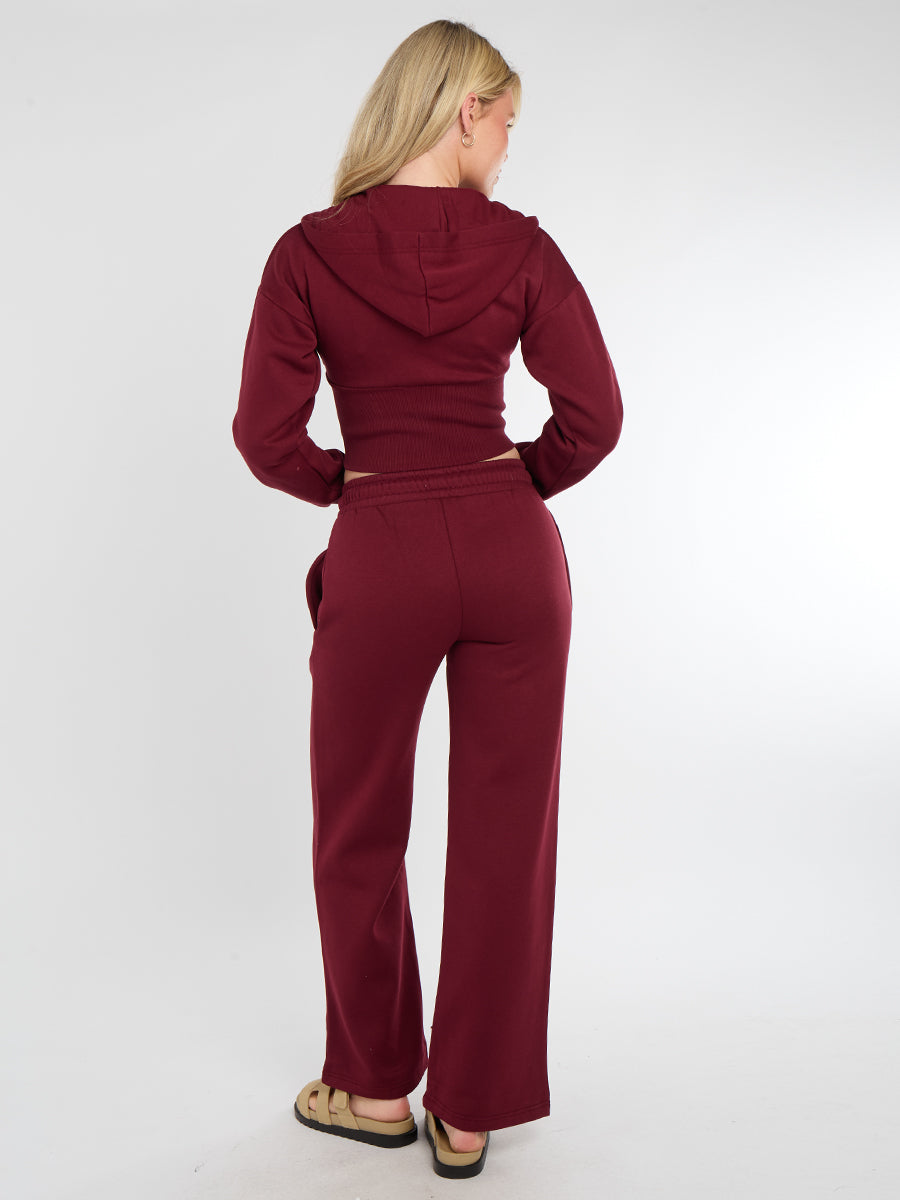 Bijgesneden rits omhoog Hood Sweatshirt & Wide Leg Trouser Tracksuit
