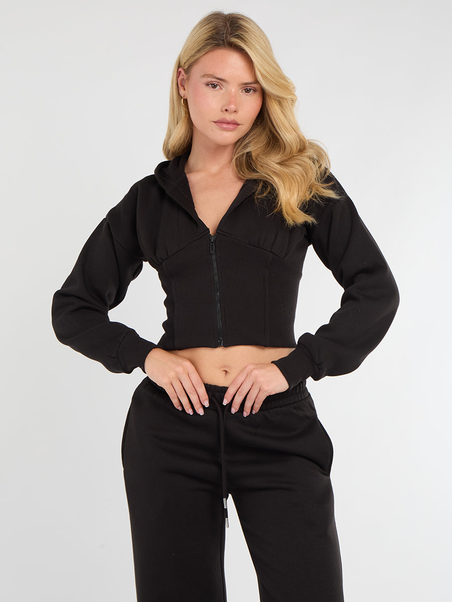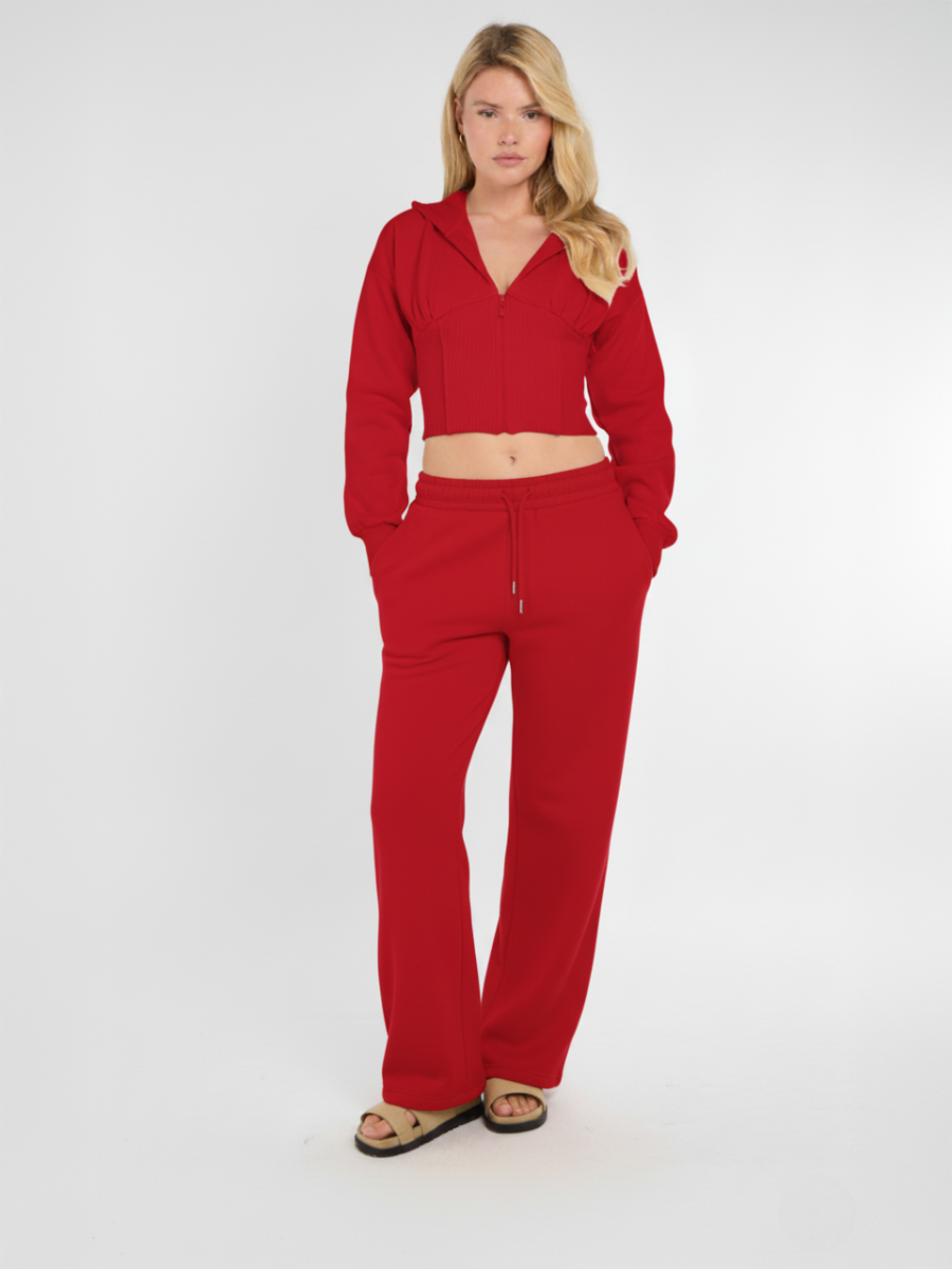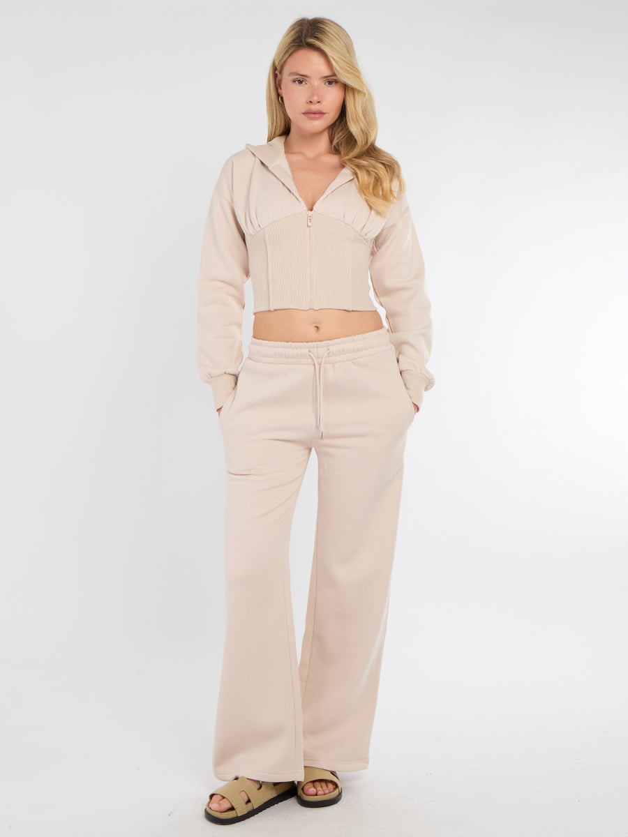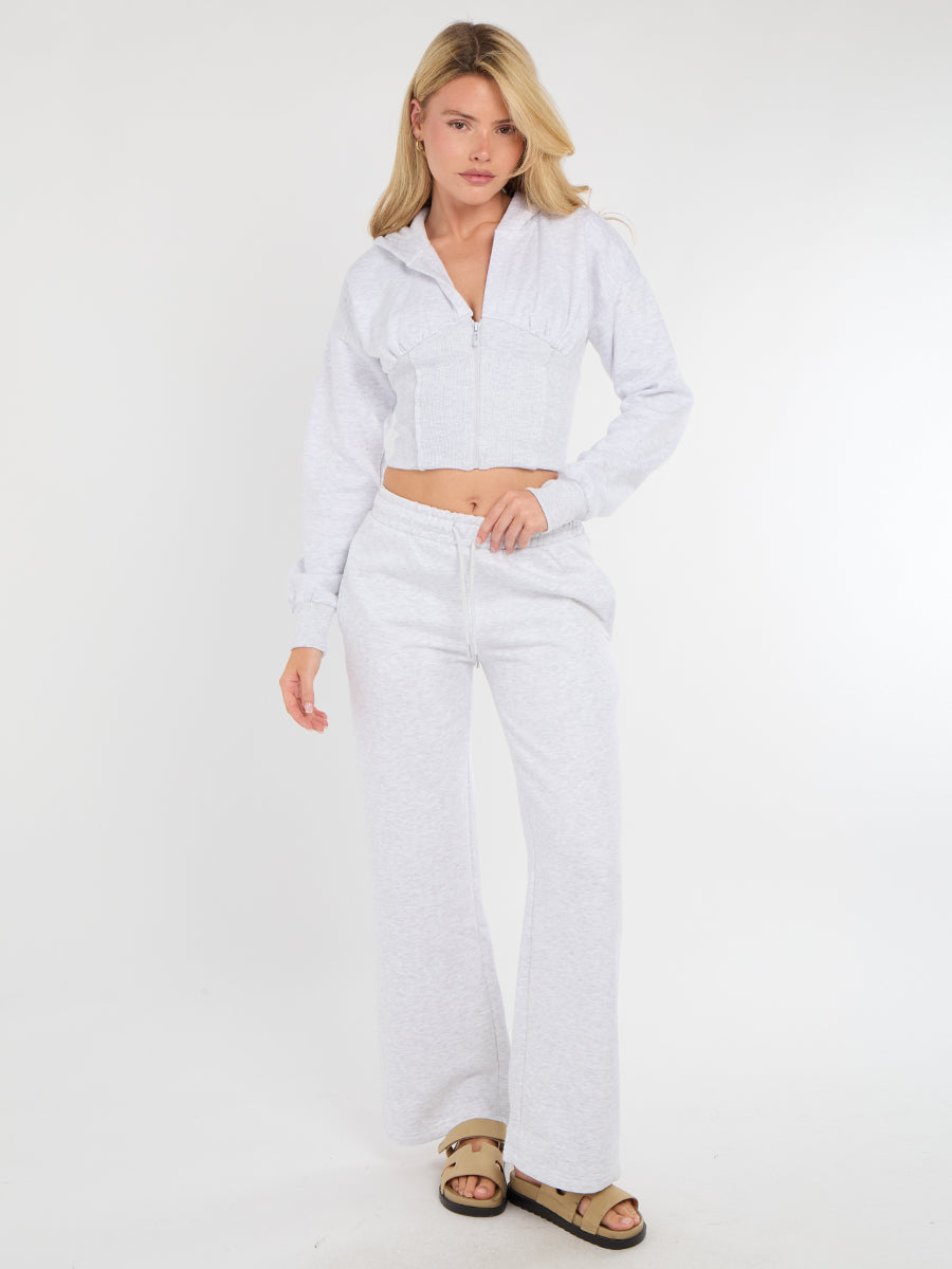 Bijgesneden rits omhoog Hood Sweatshirt & Wide Leg Trouser Tracksuit
