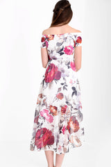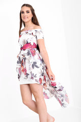 Bloemprint Asymmetrische Dip Hem Chiffon Bardot -jurk