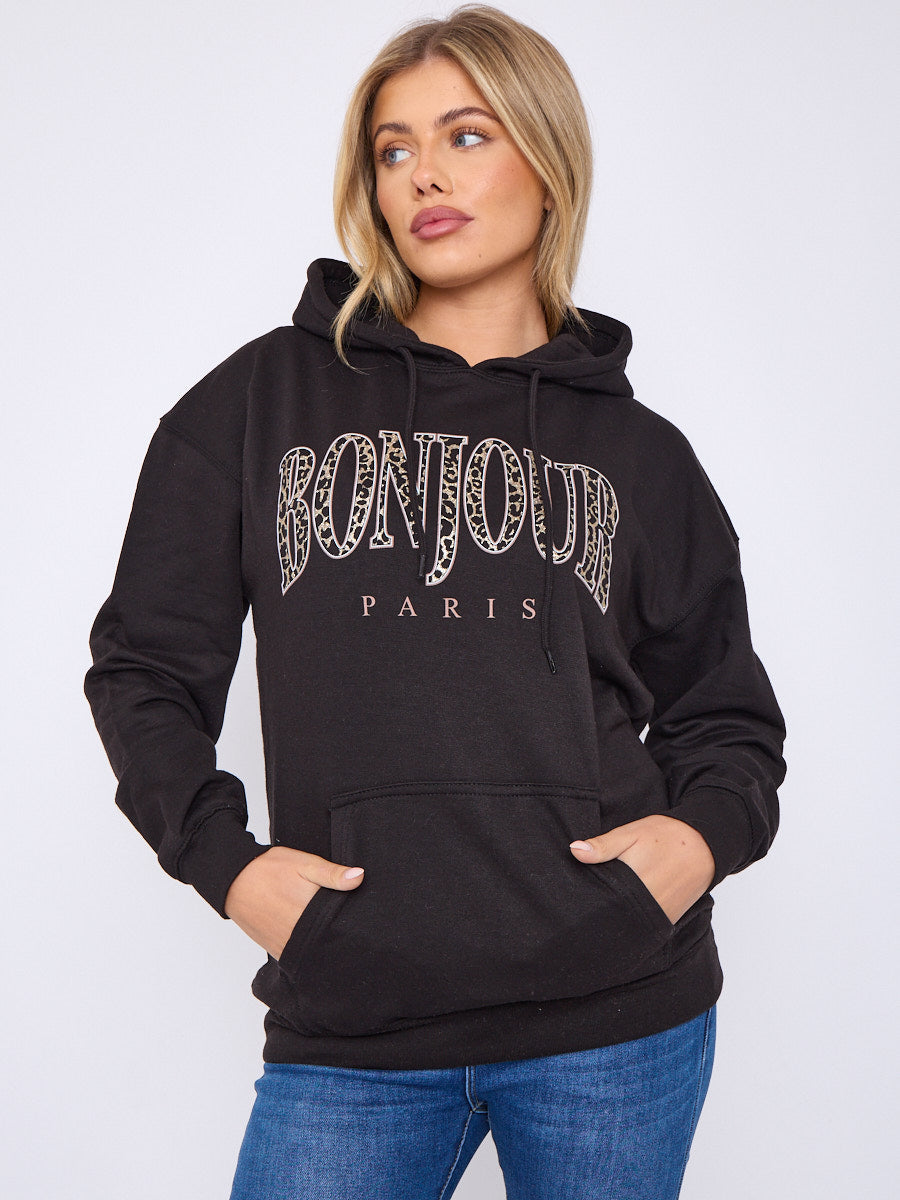 Bonjour luipaardprint grafische hoodie