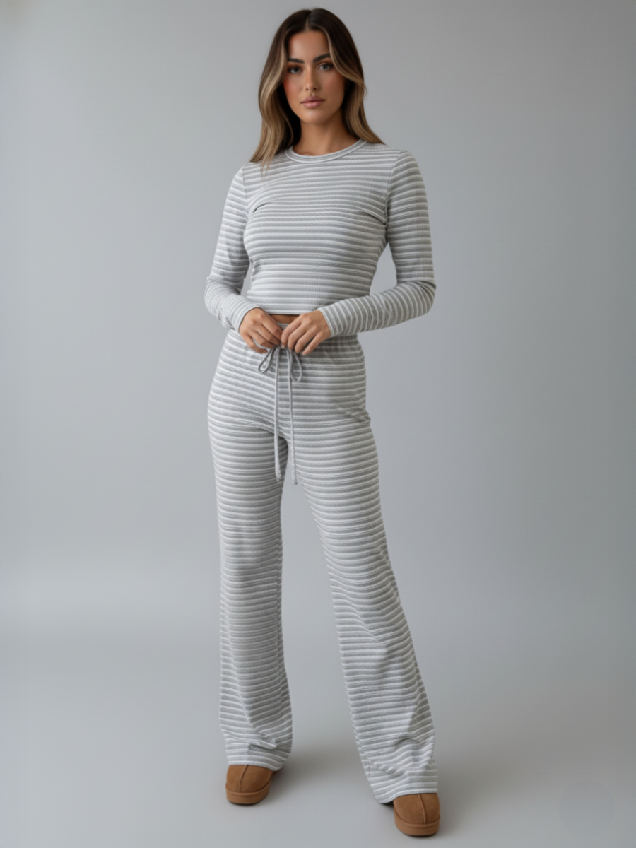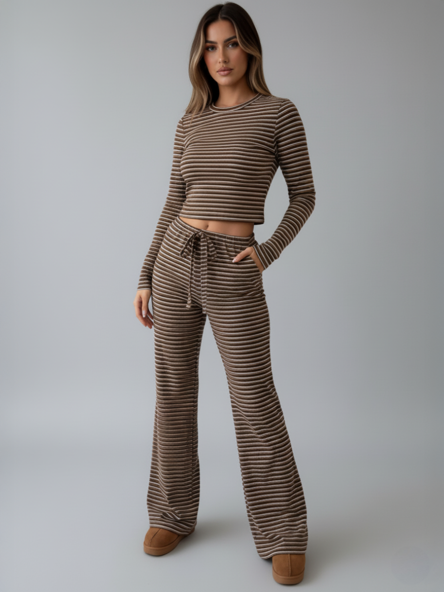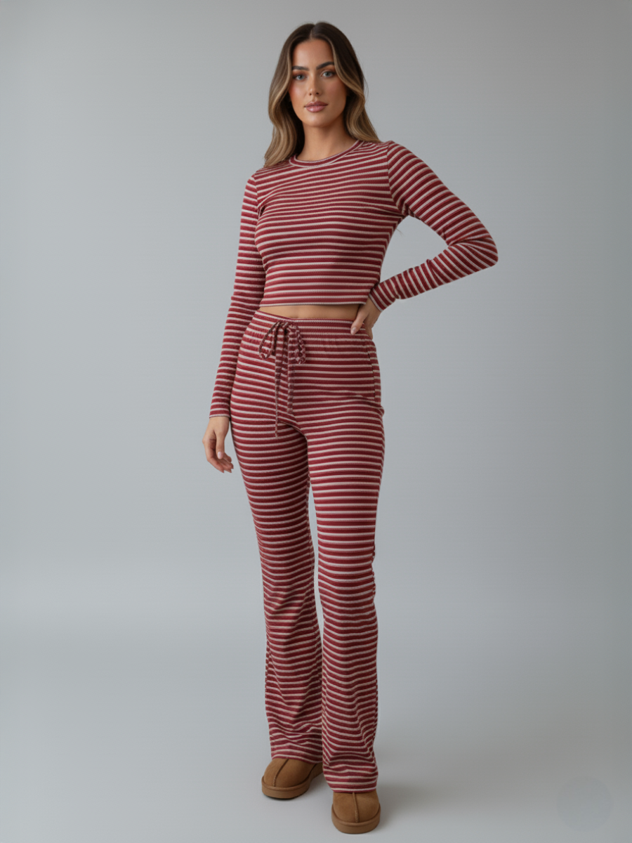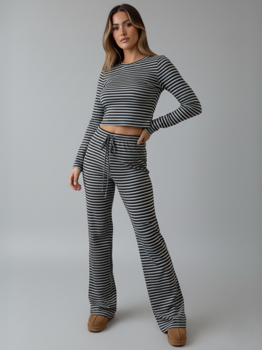 Gestreepte gebreide top en broek, combi-set