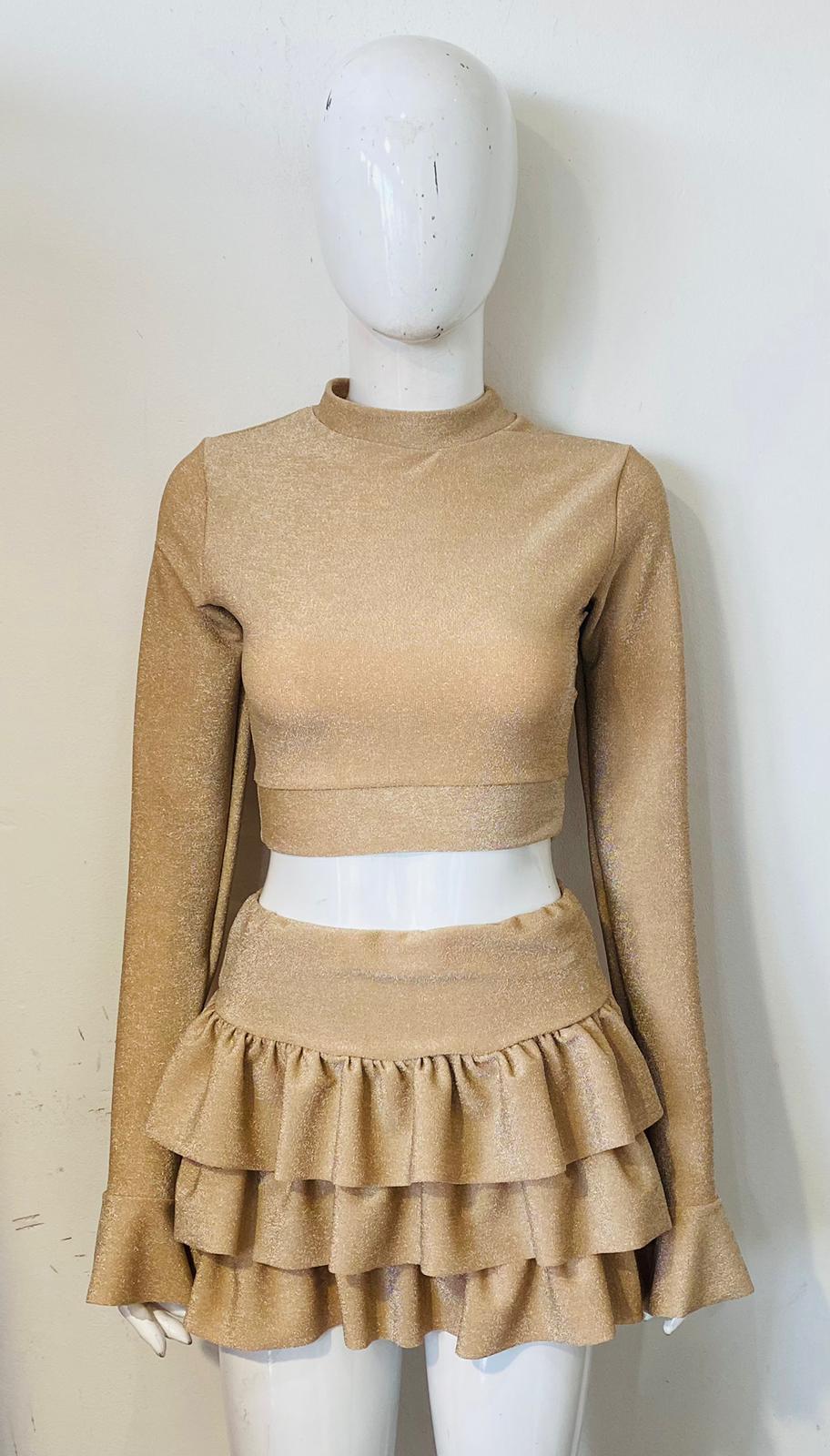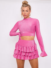 Lurex Crop Top & Ruffle Layered Rok-coöperatie
