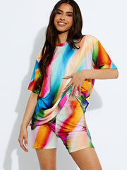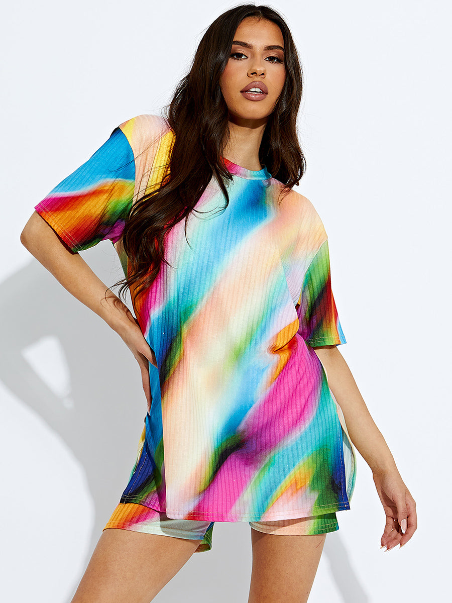 Tie-dye geribbeld oversized top & shorts coöperatie