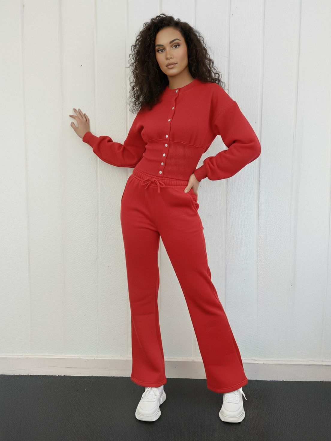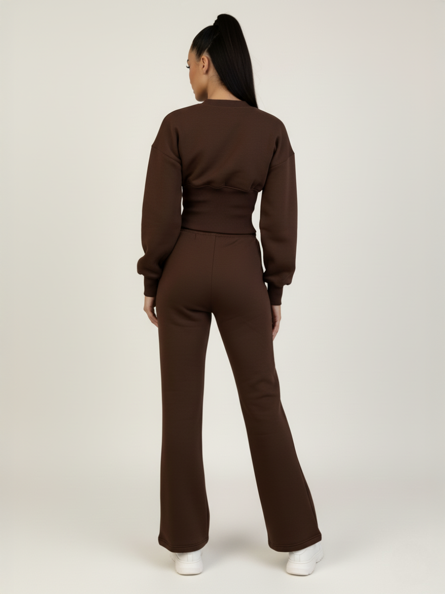 Bijgesneden sweatshirt en een brede poot broek trainingspak