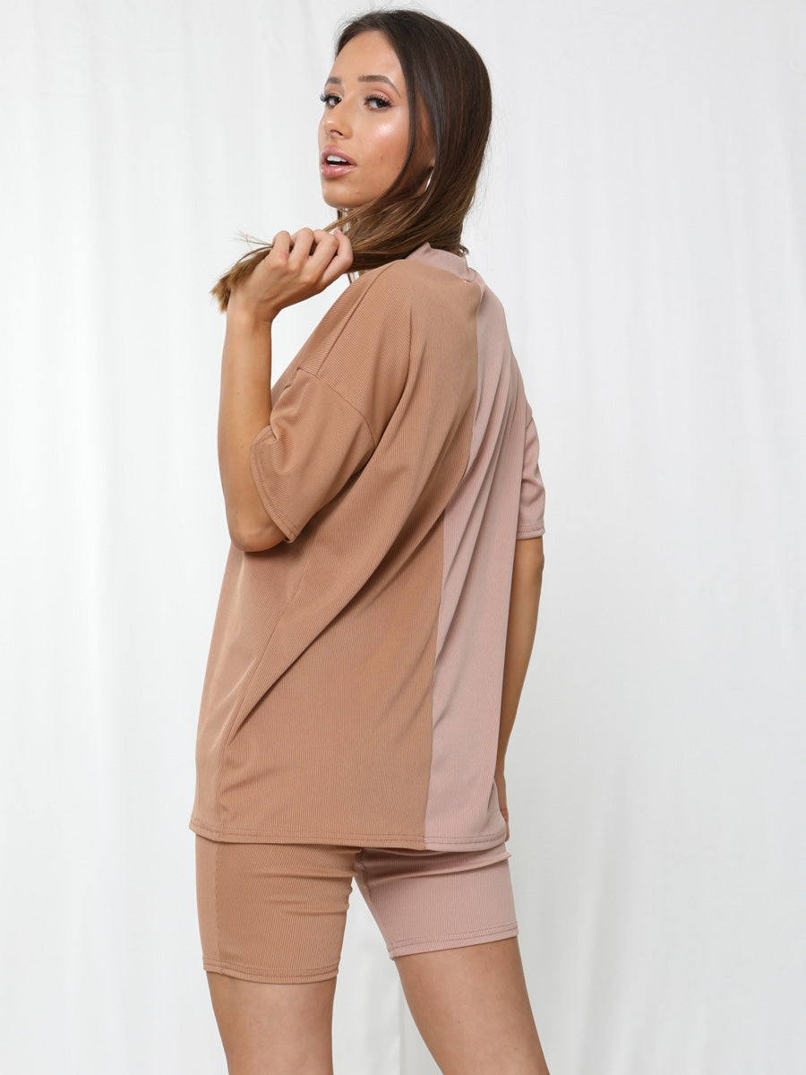 50/50 Ribbed Oversized T-Shirt & Shorts Co-ord