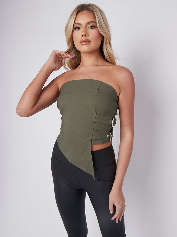 Belted Side Asymmetric Hem Bandeau Crop Top