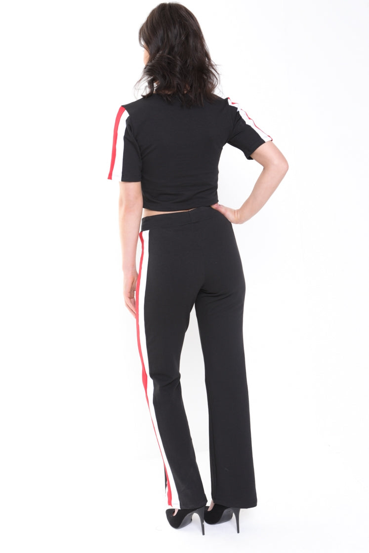 Black And Red Side Stripe Loungewear Co-ord
