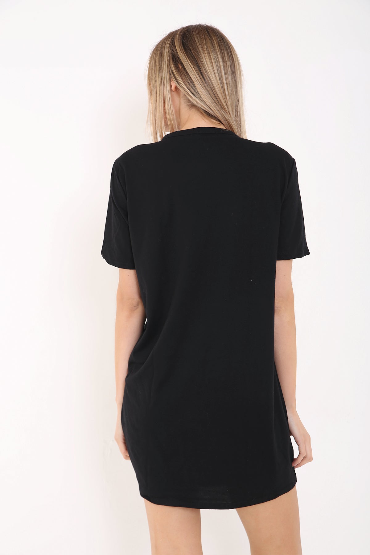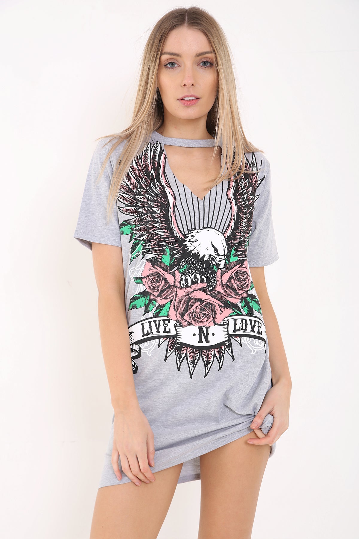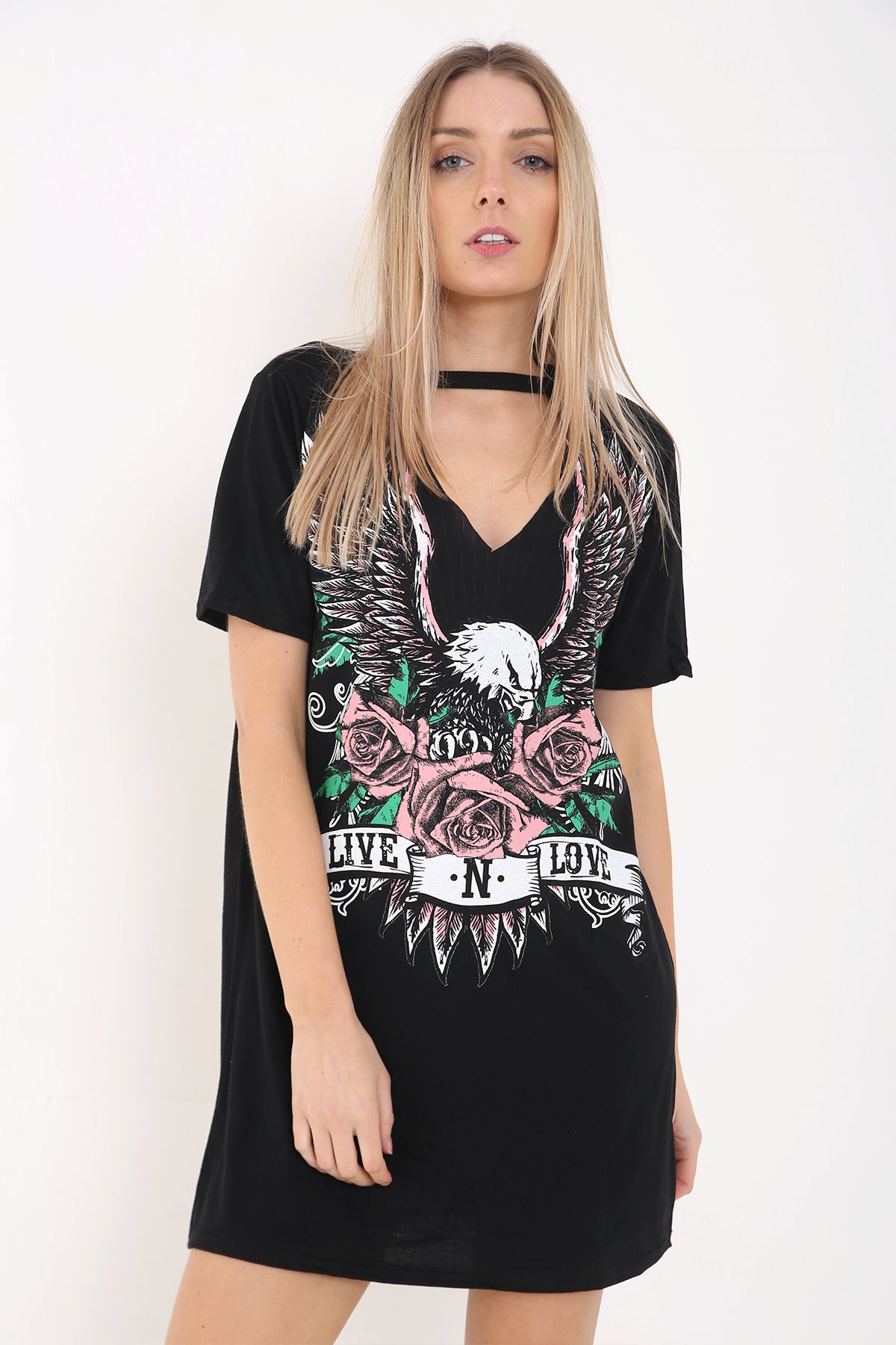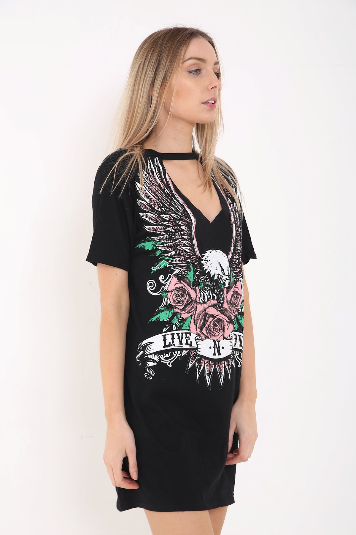 Choker Neck Live N Love Eagle Printed Longline T Shirt Dress
