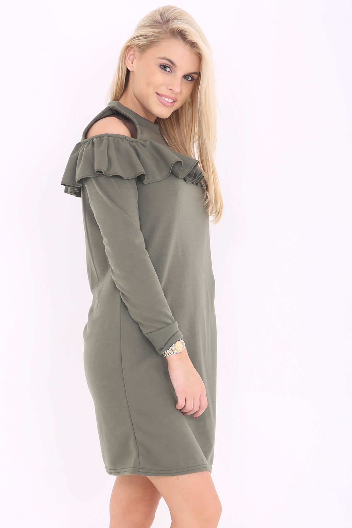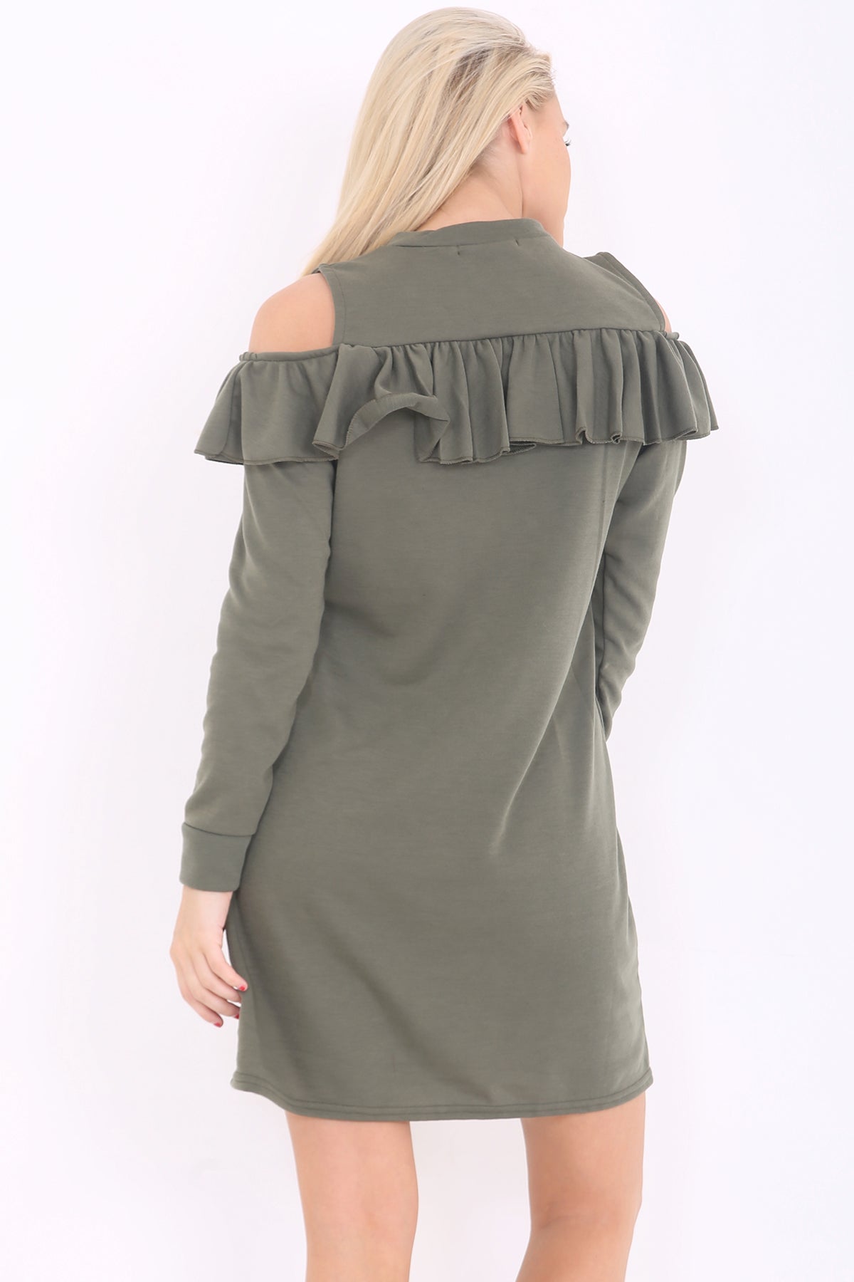 Cold Shoulder Ruffle Frill Dress