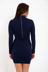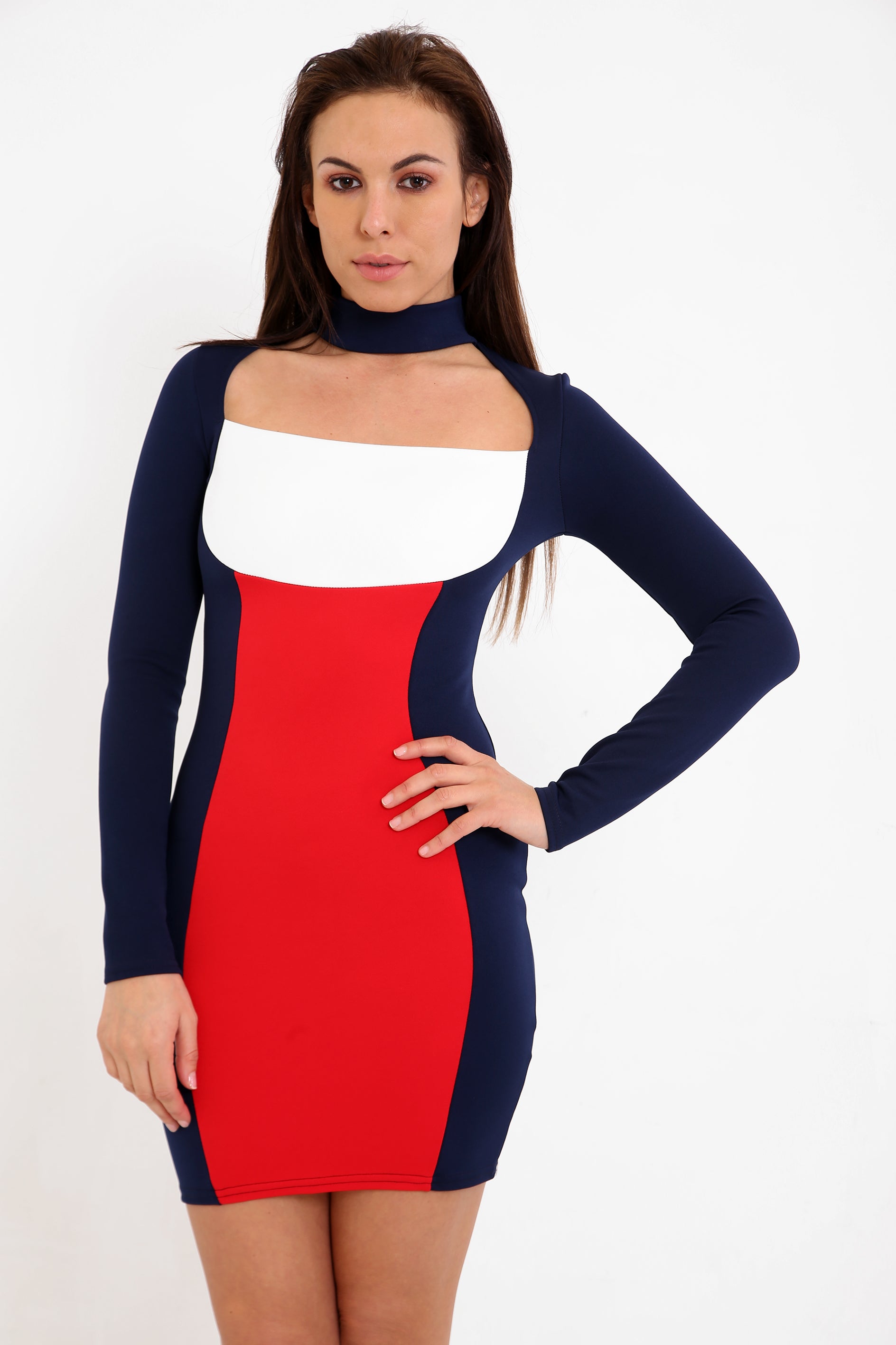 Contrast Panel Choker & Square Neck Bodycon Dress