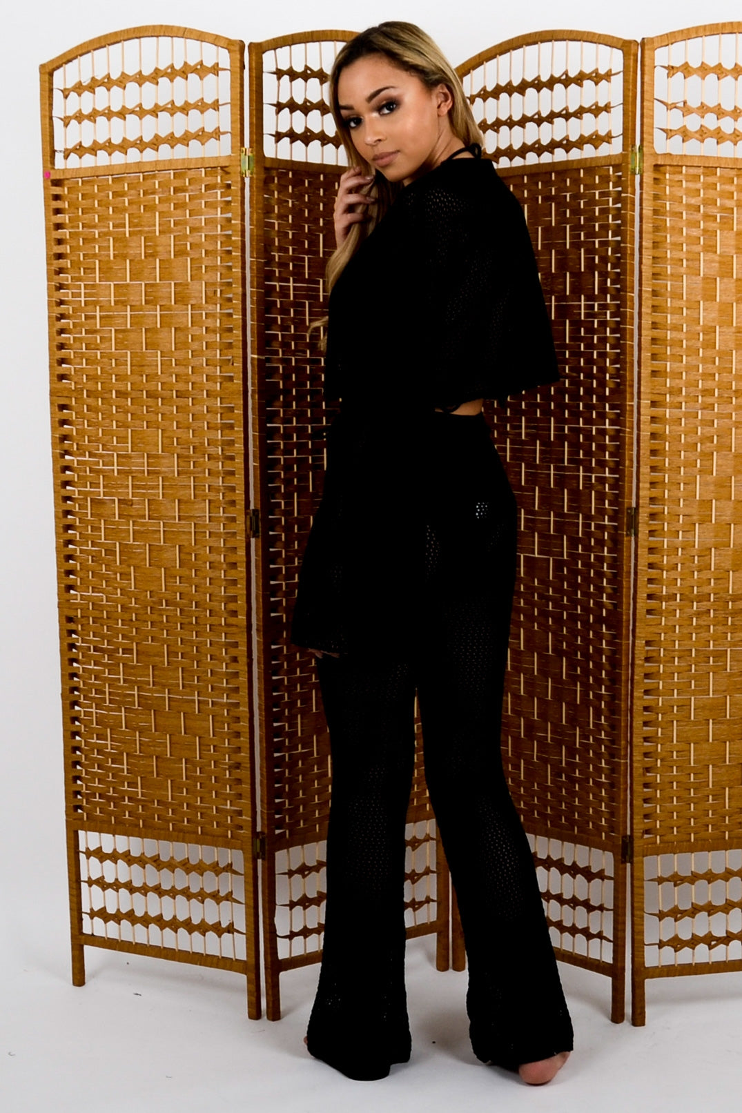 Crochet Knit Split Sleeve Crop Top & Trouser Co-ord