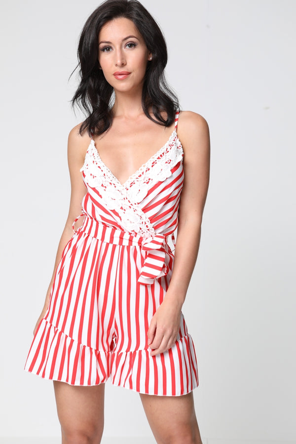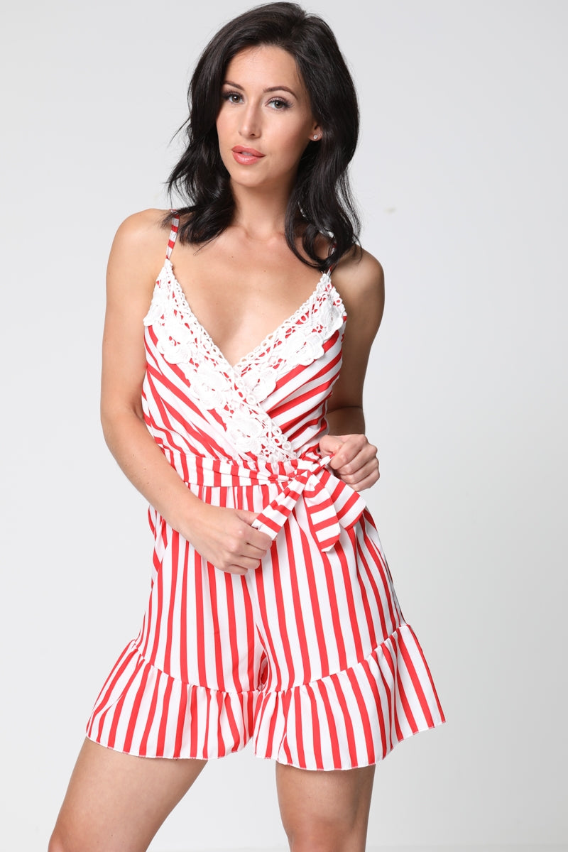 Crochet Trim Striped Playsuit