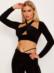 Cross Front Long Sleeve Crop Top