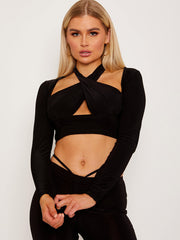 Cross front Long Sleeve Crop Top