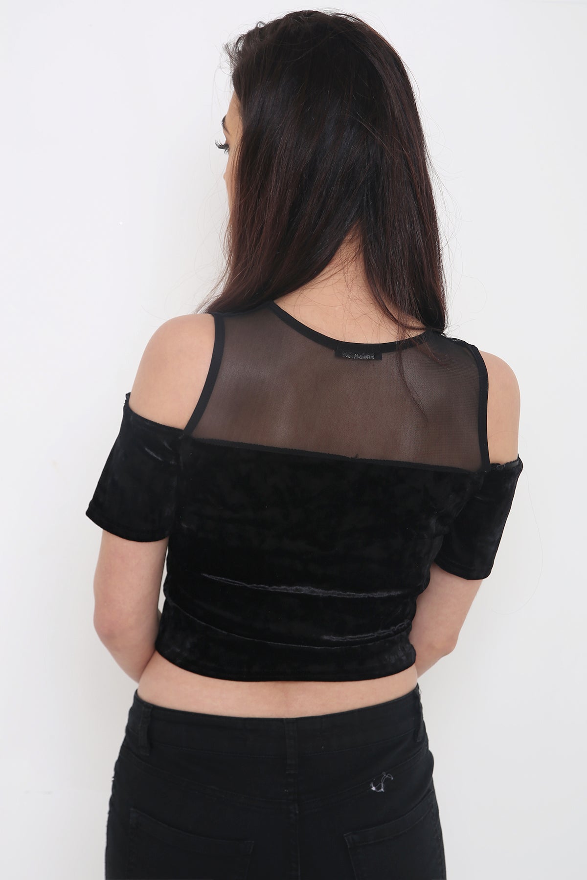 Crushed Velour Mesh Frill Crop Top