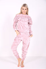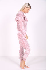 Crushed Velour Ruffle Frill Top And Bottom Lounge-wear