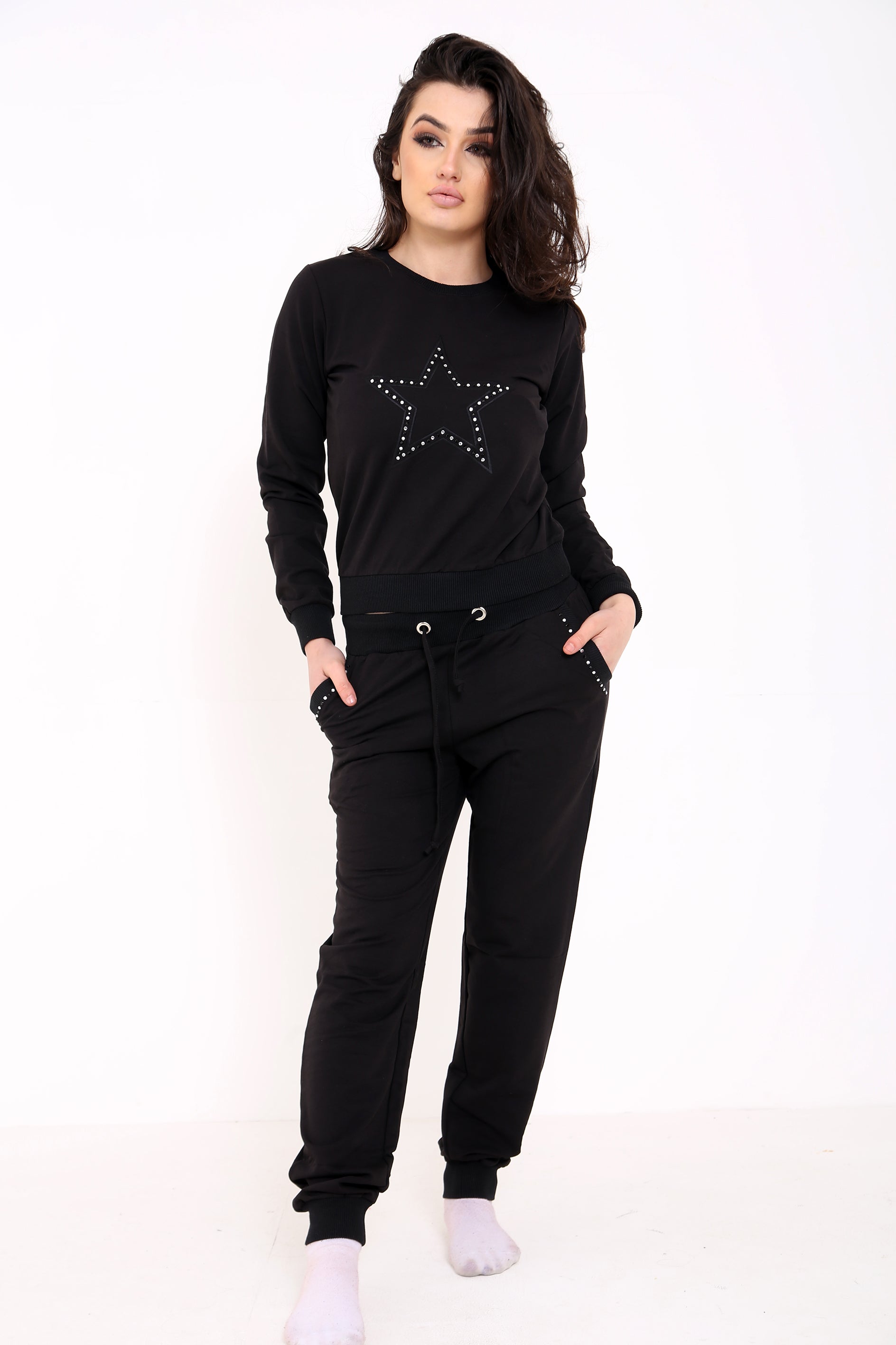 Diamante Embellished Star Loungewear Two Piece Suit Coordinate