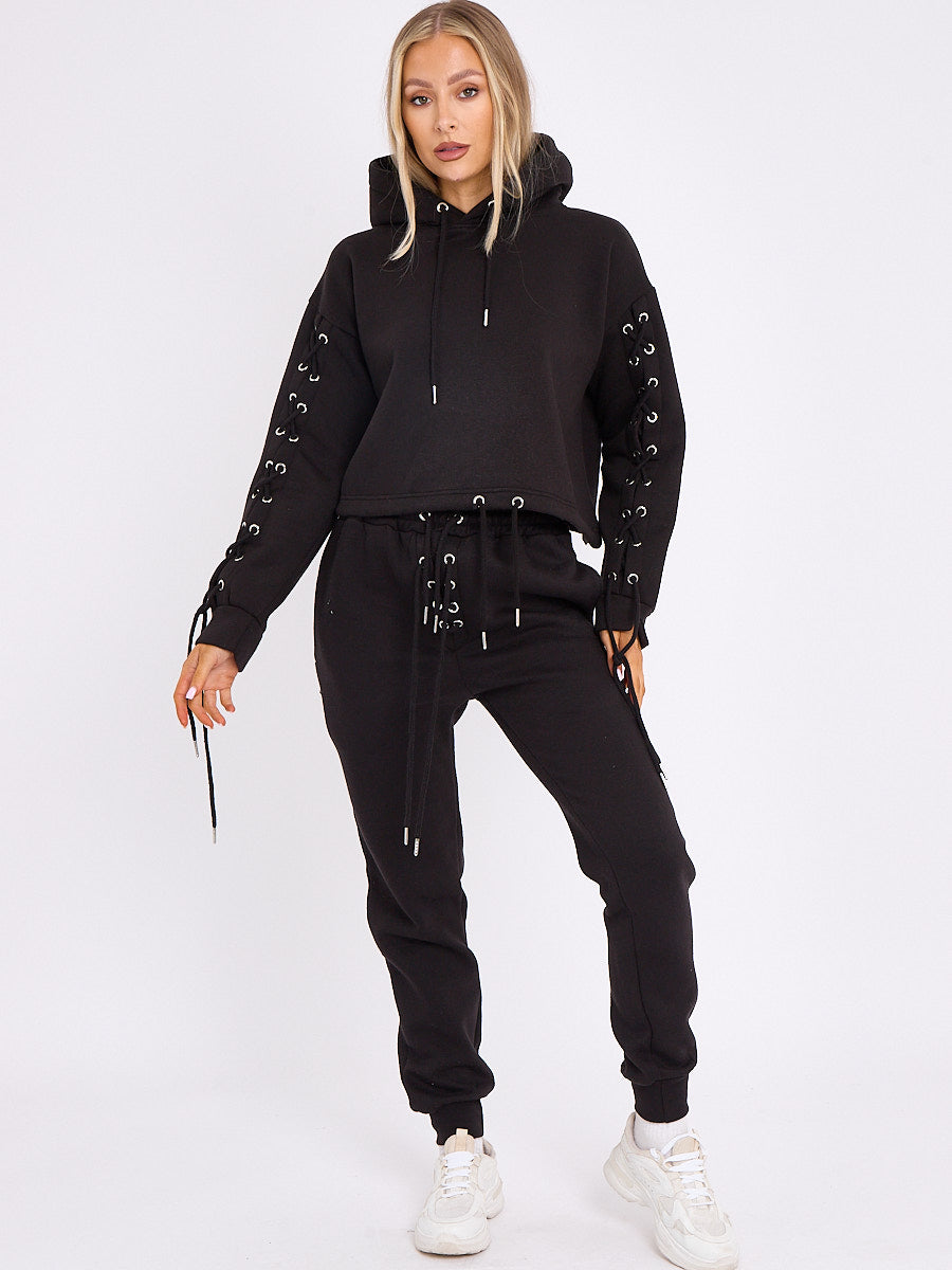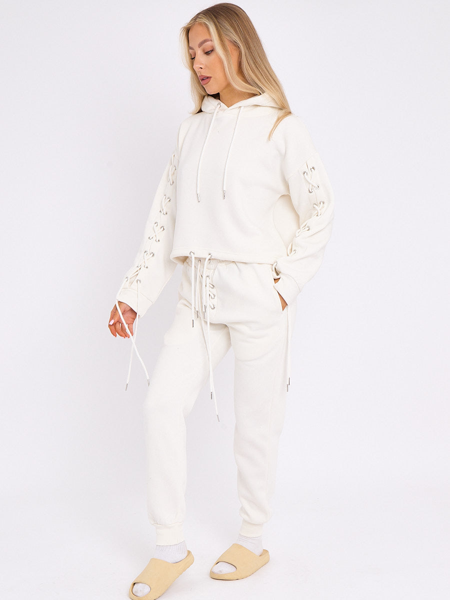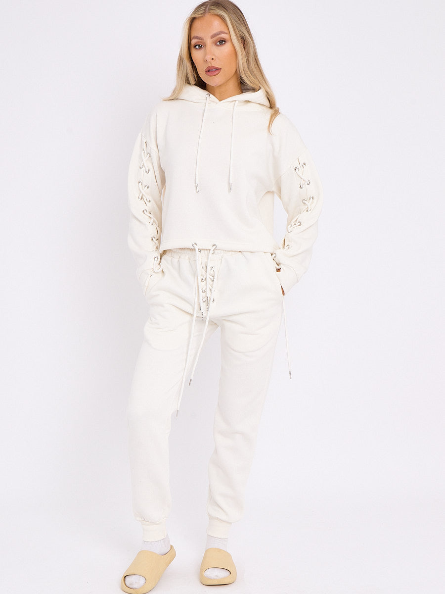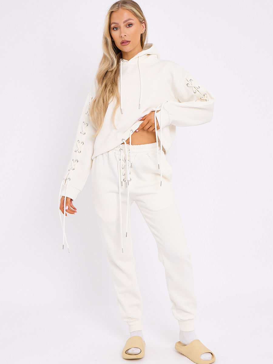 Eyelet Lace Up Detail Hoodie & Jogger Fleece Co-ord