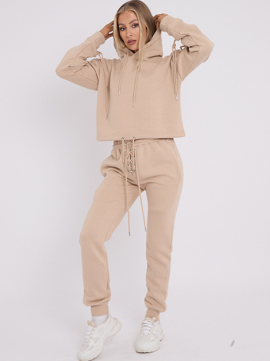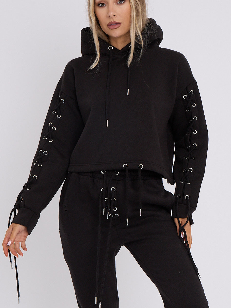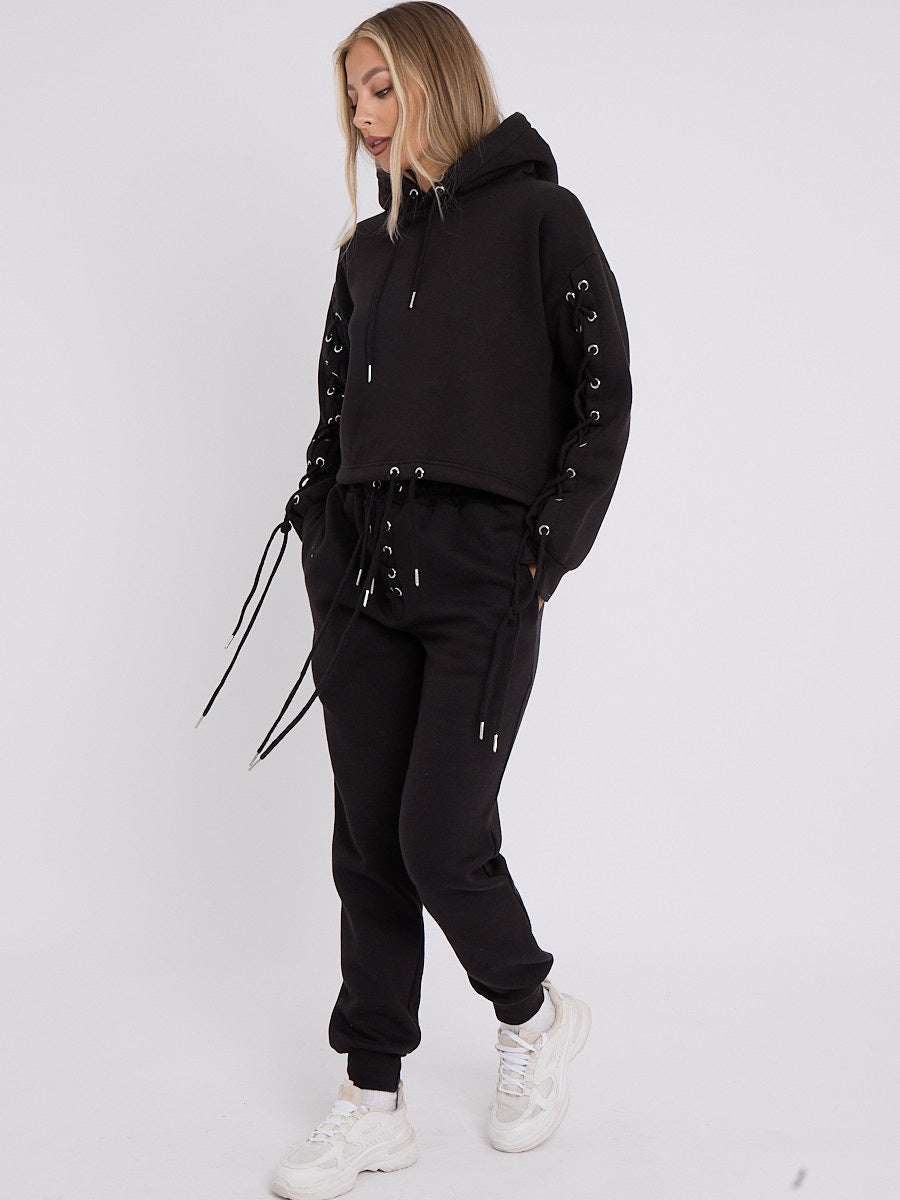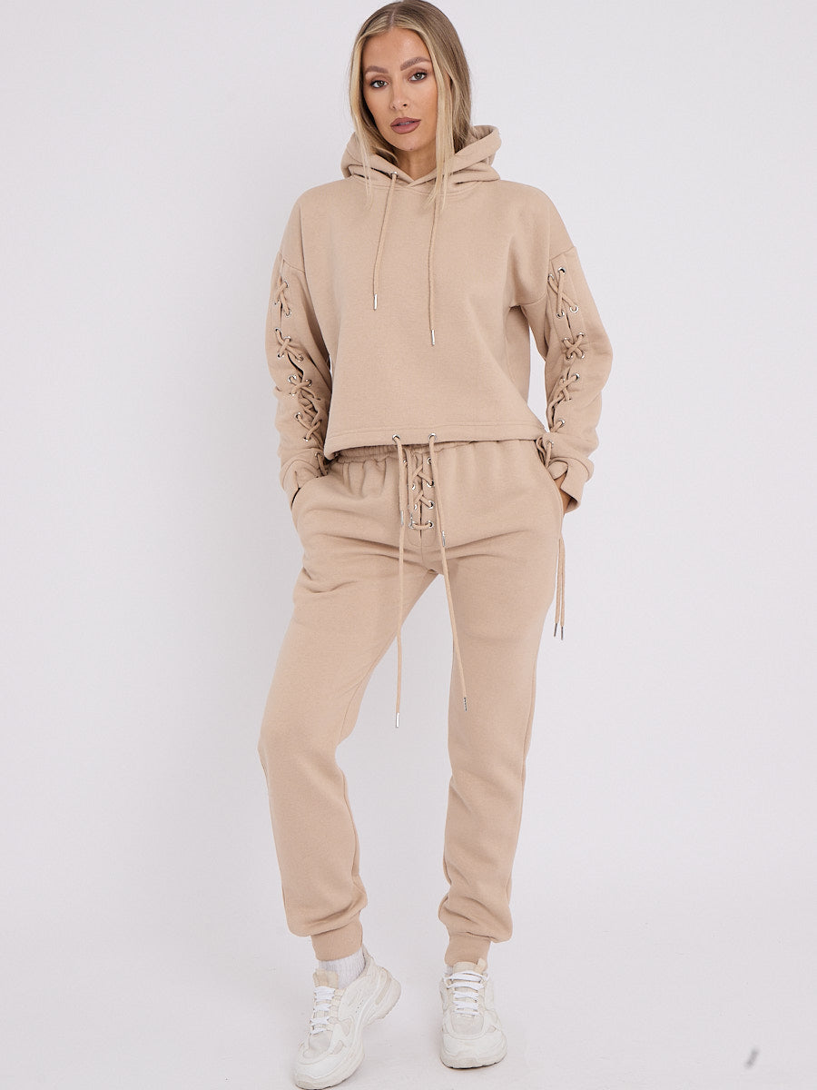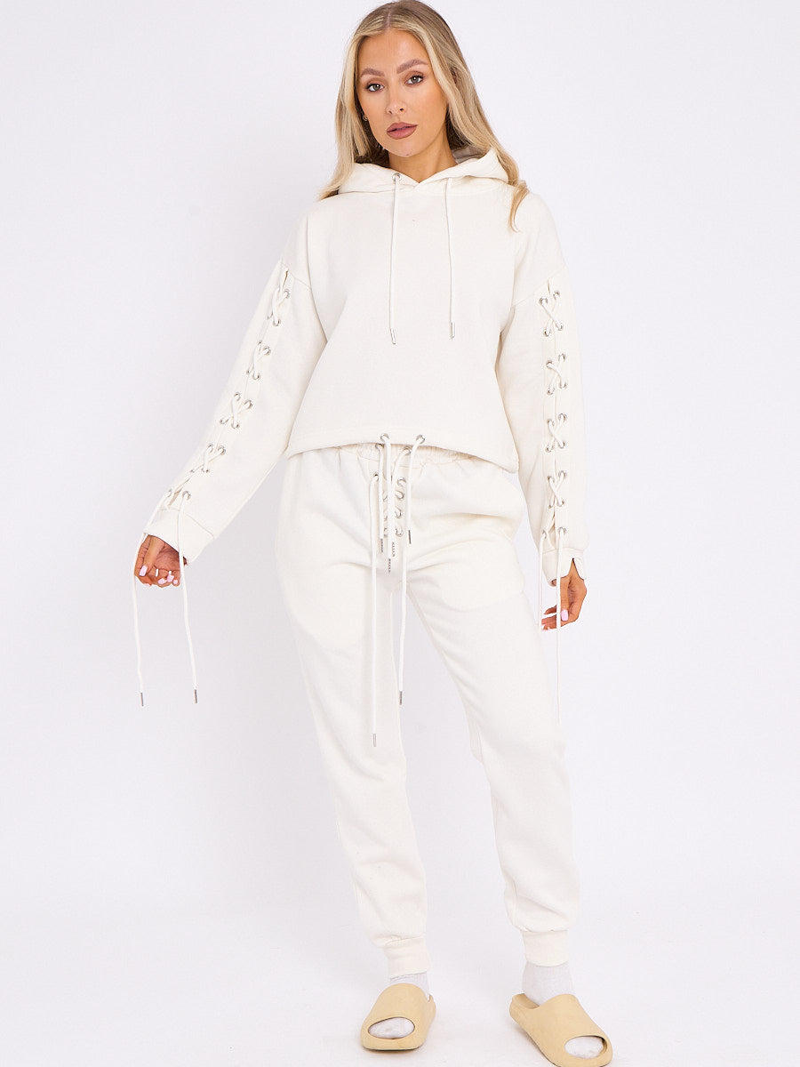 Eyelet Lace Up Detail Hoodie & Jogger Fleece Co-ord