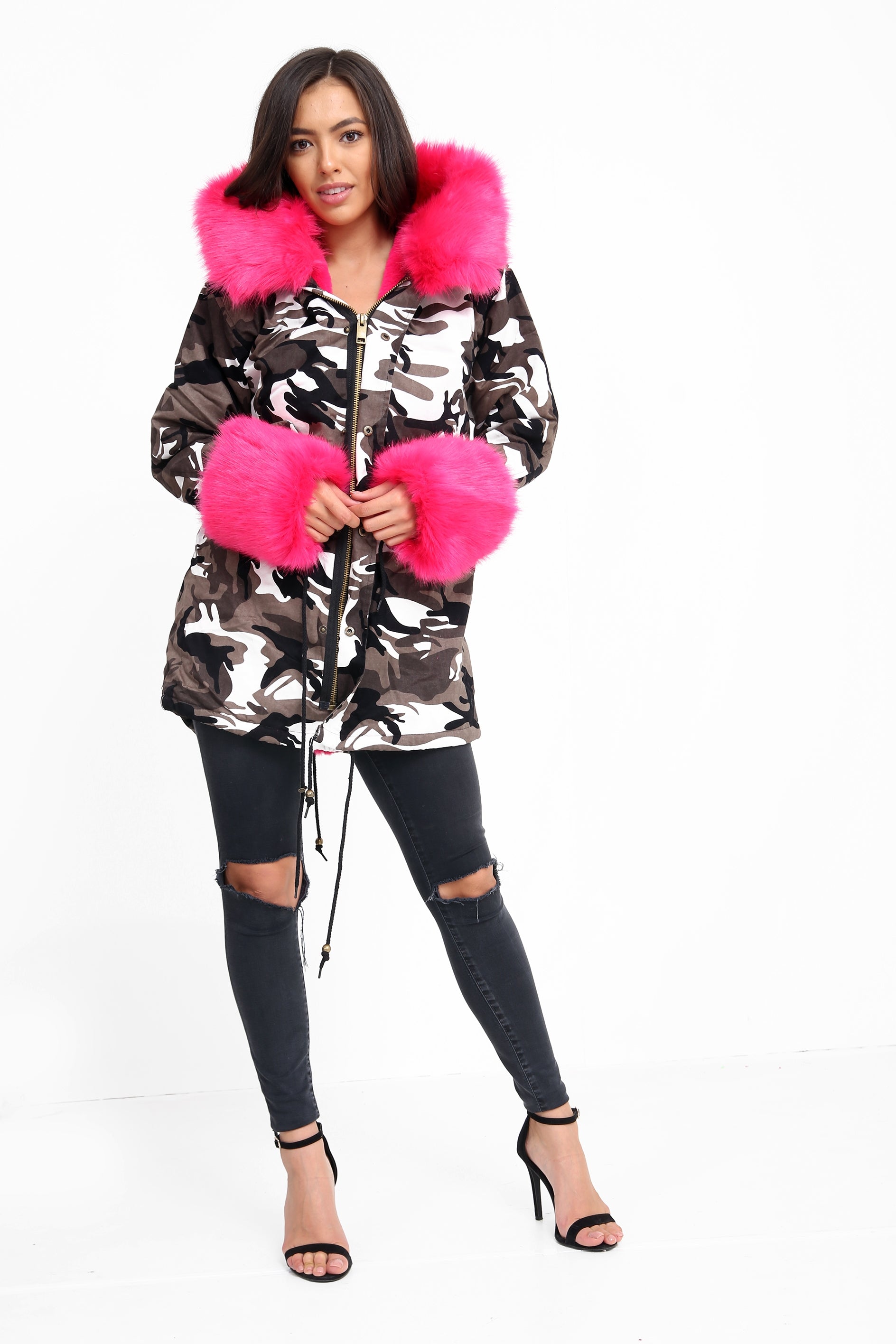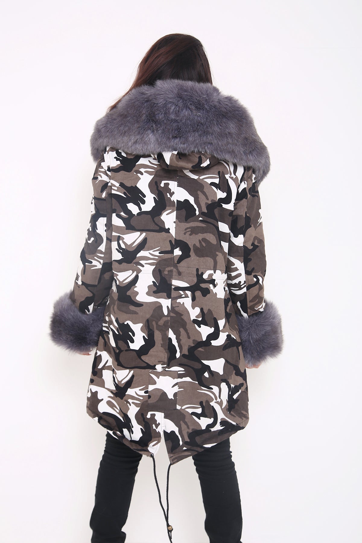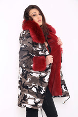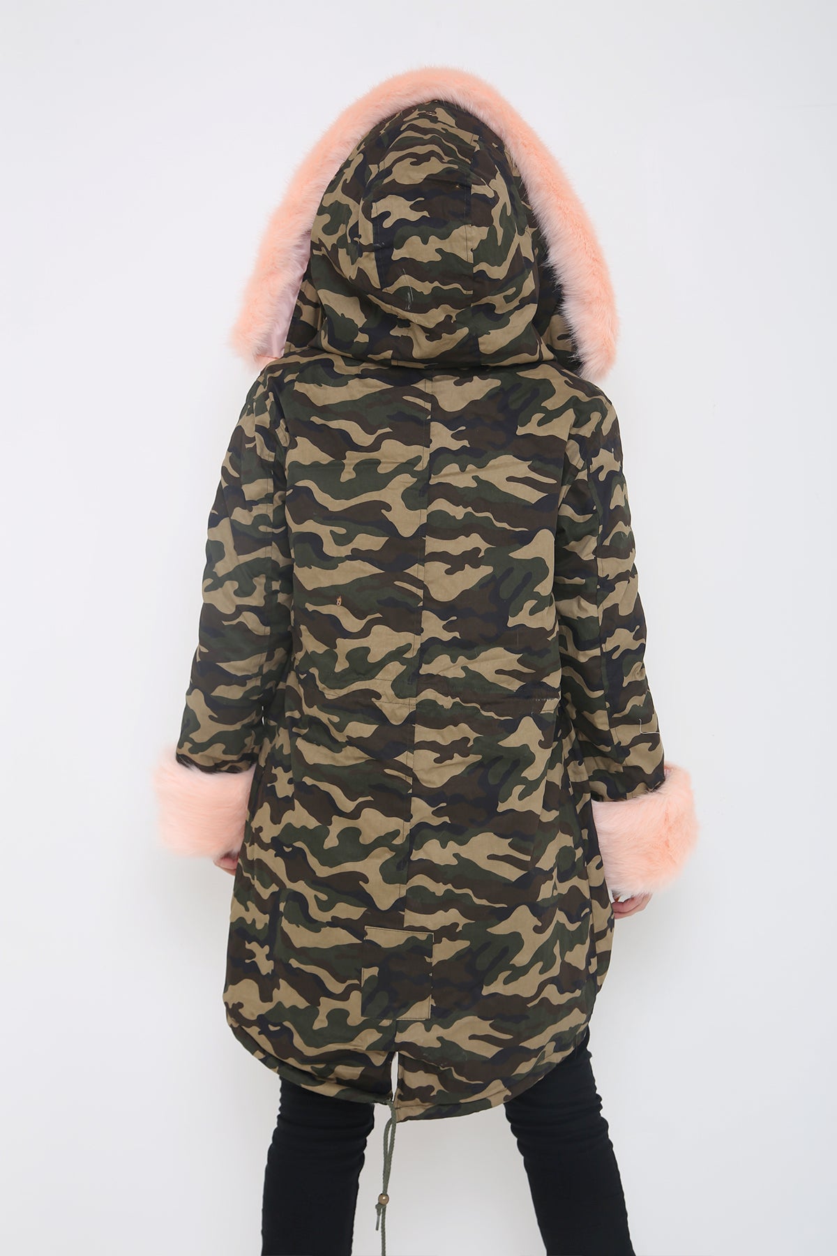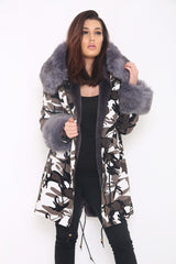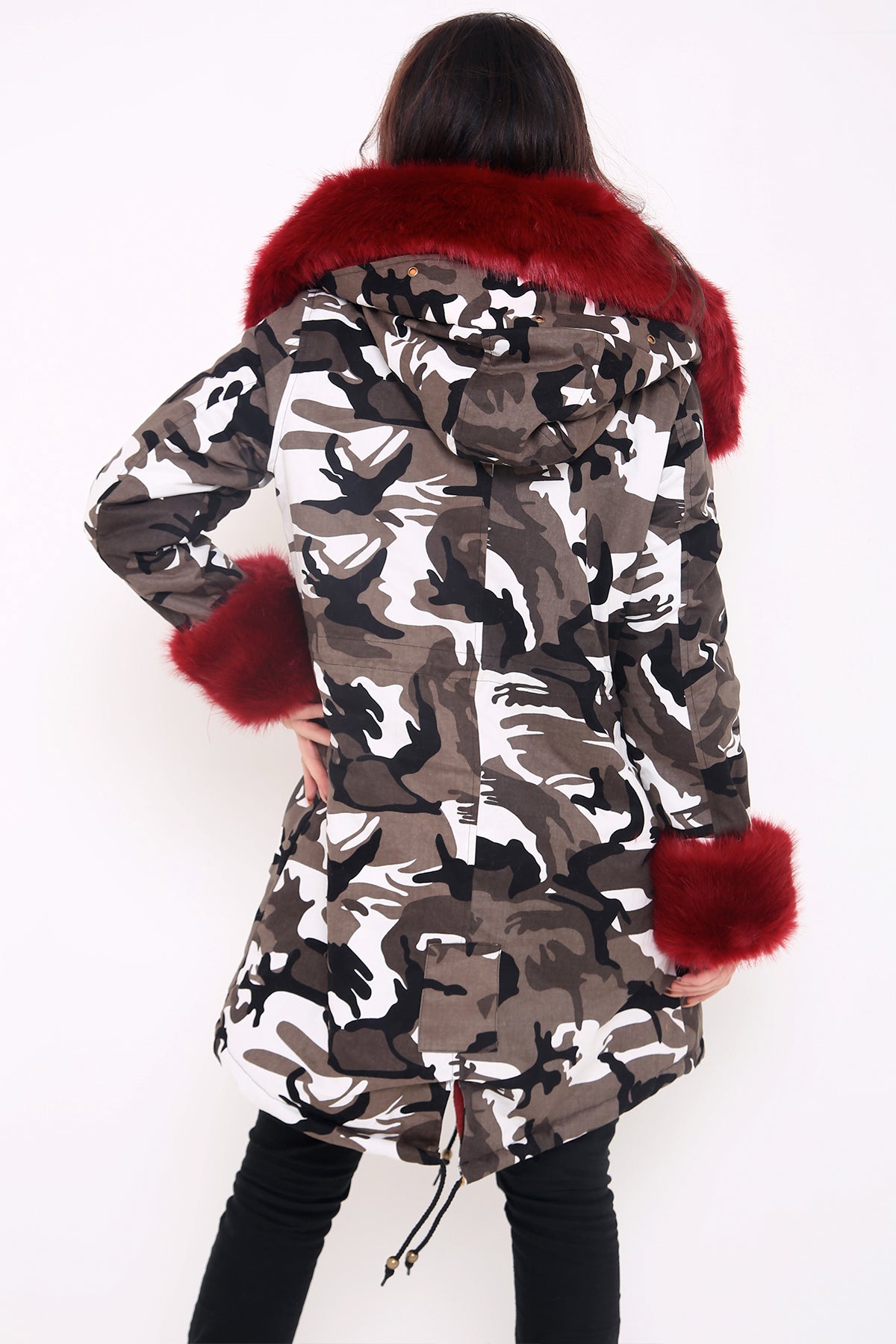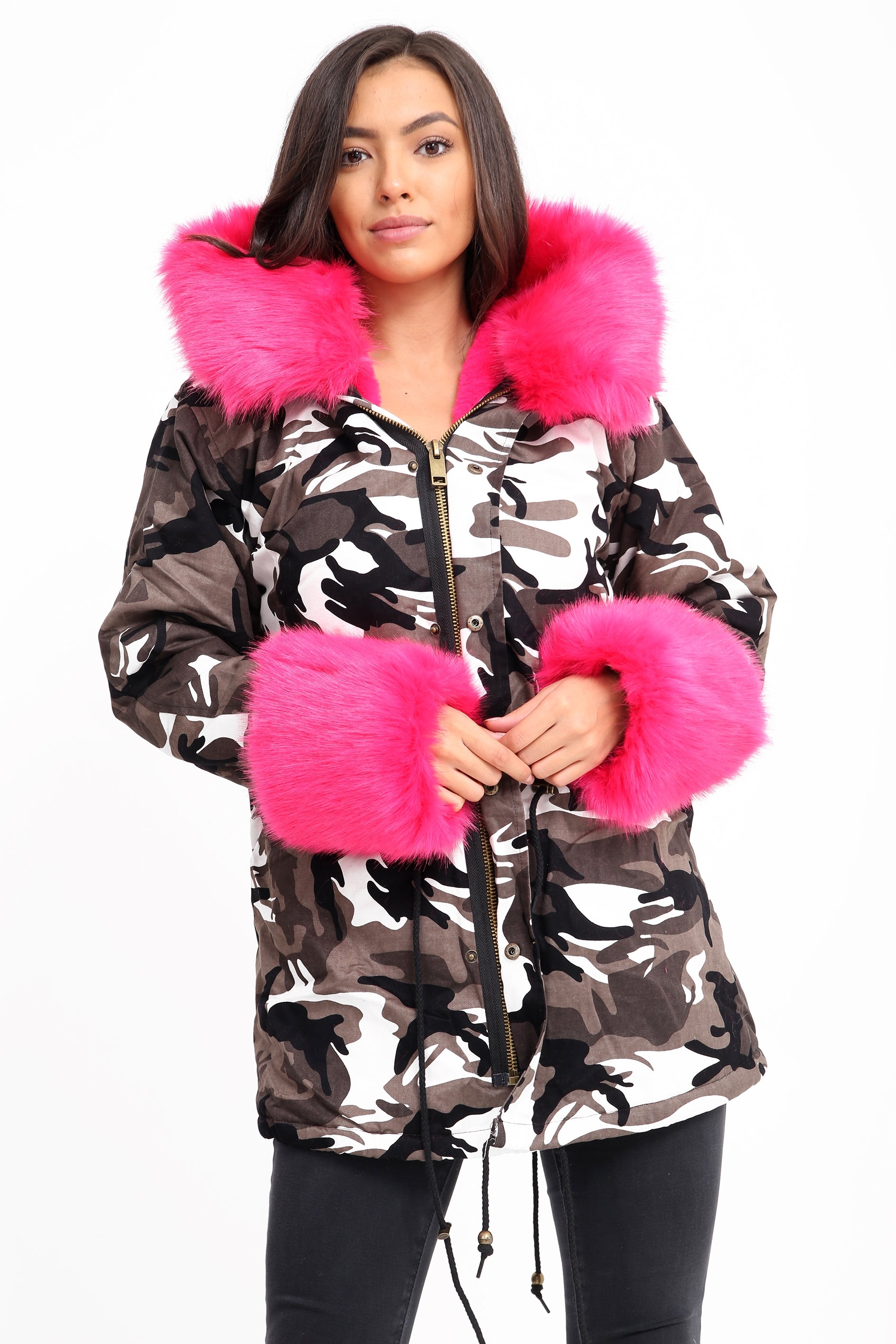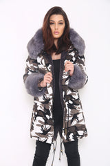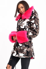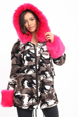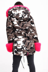 Faux Fur Lined Camouflage Winter Parka Jacket