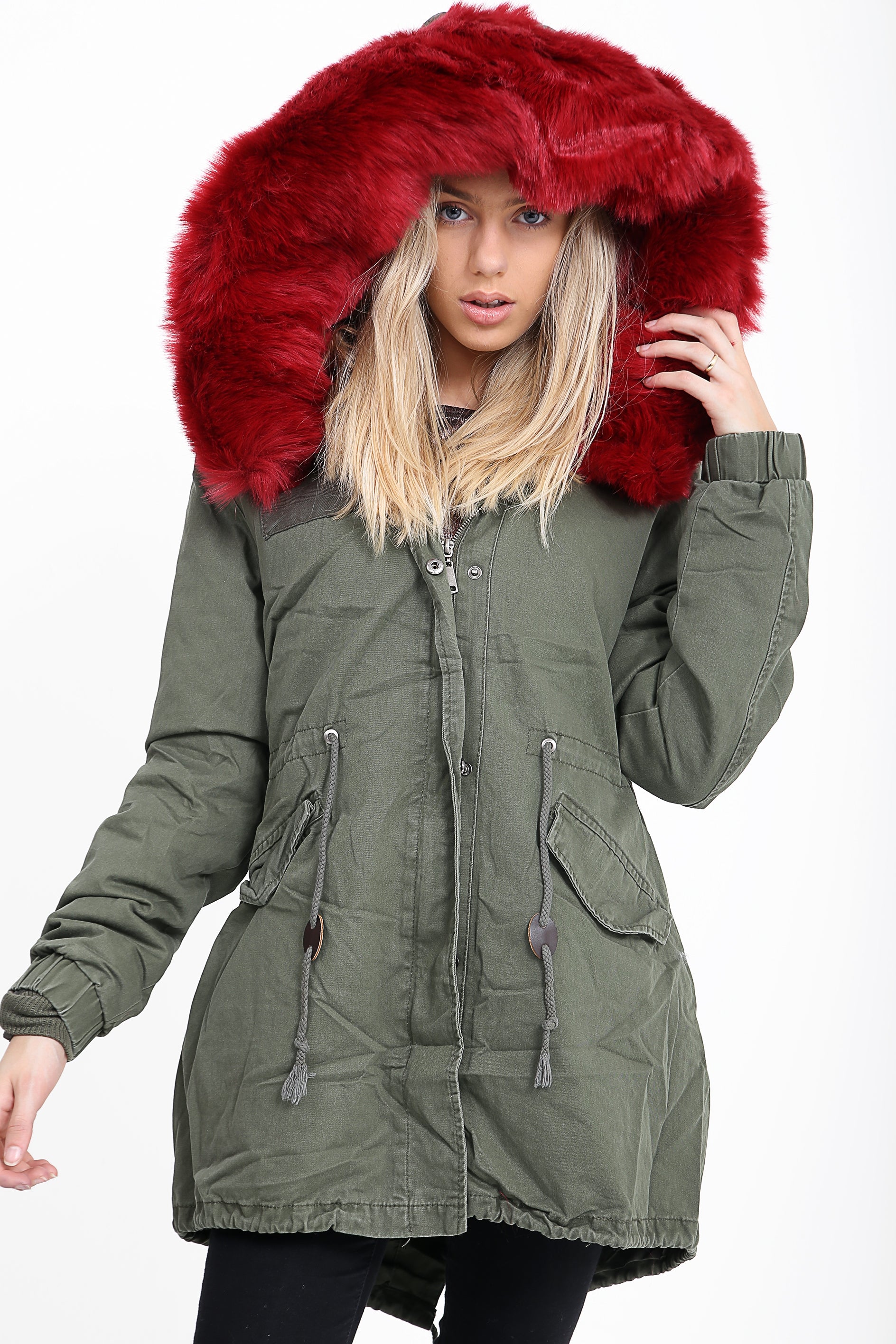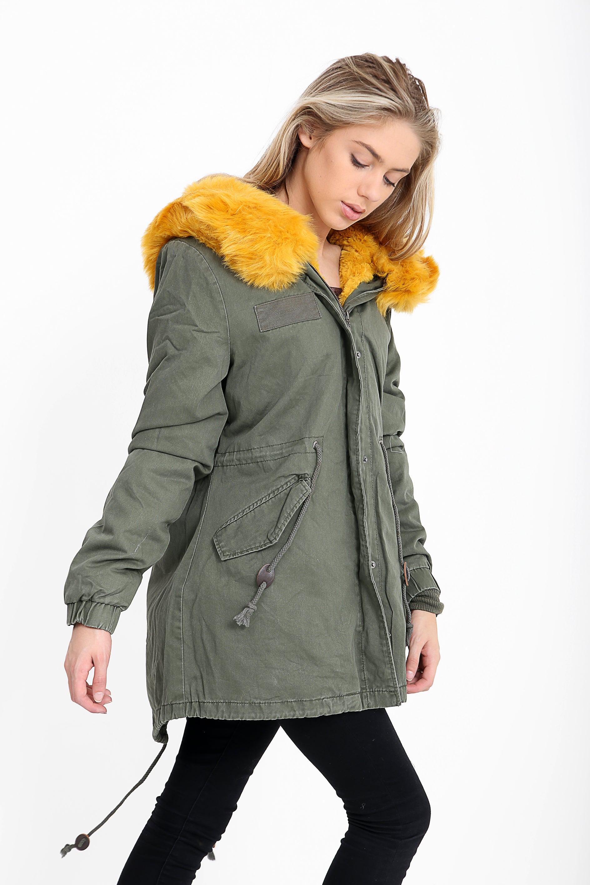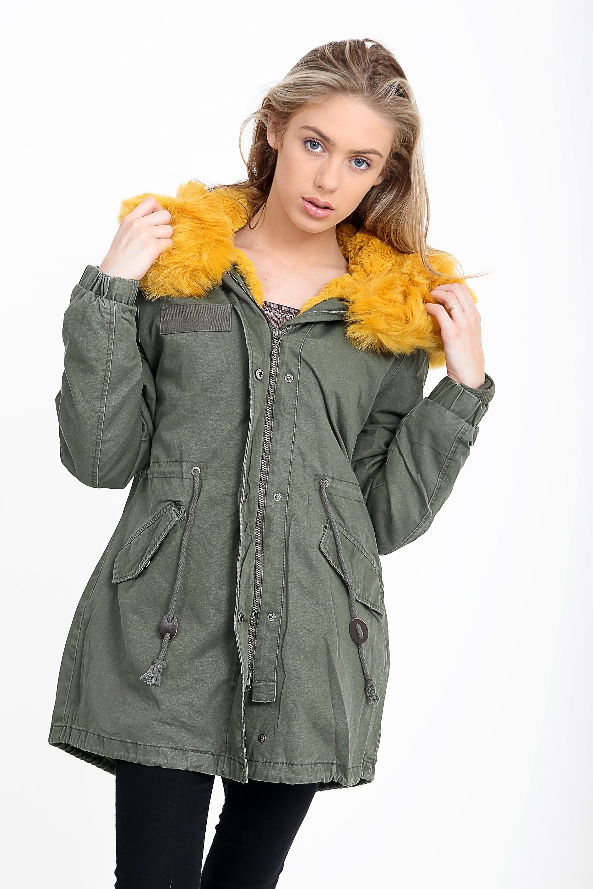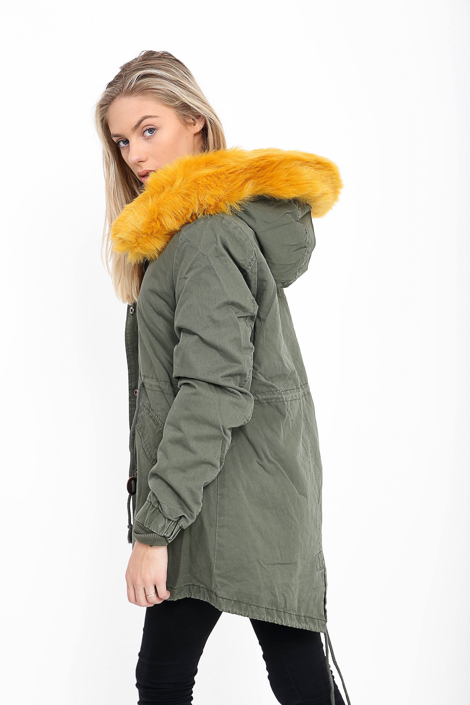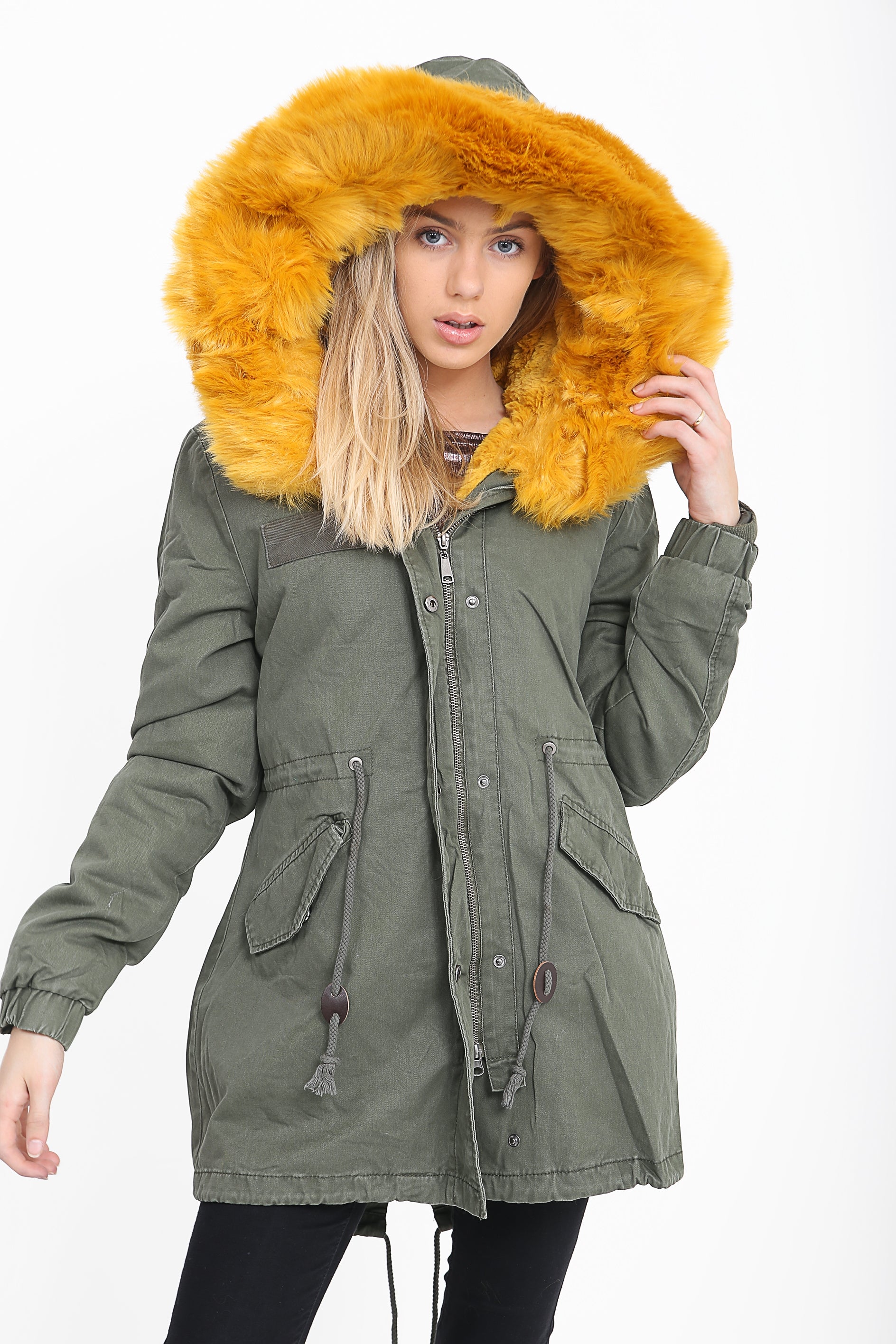 Faux Fur Lined Khaki Winter Parka Jacket