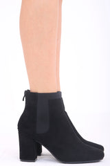 Faux Suede Heeled Ankle Boots